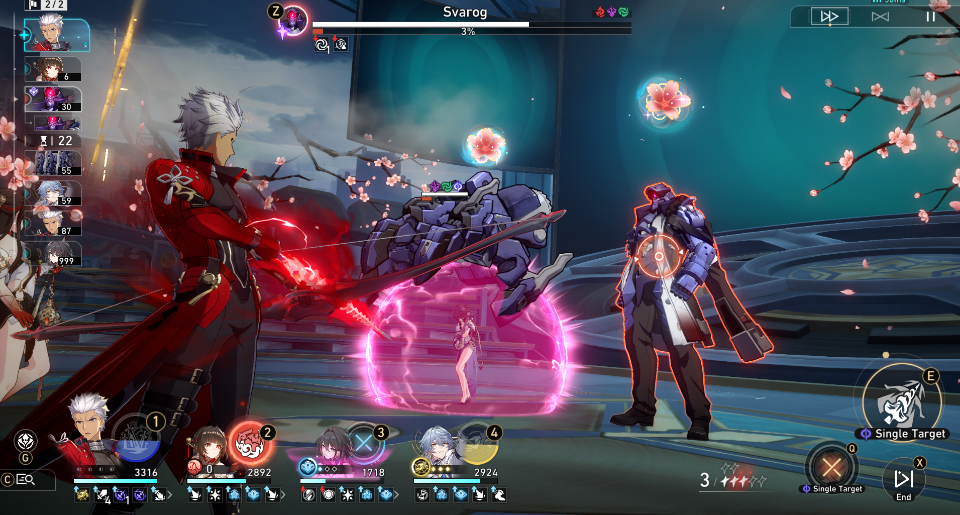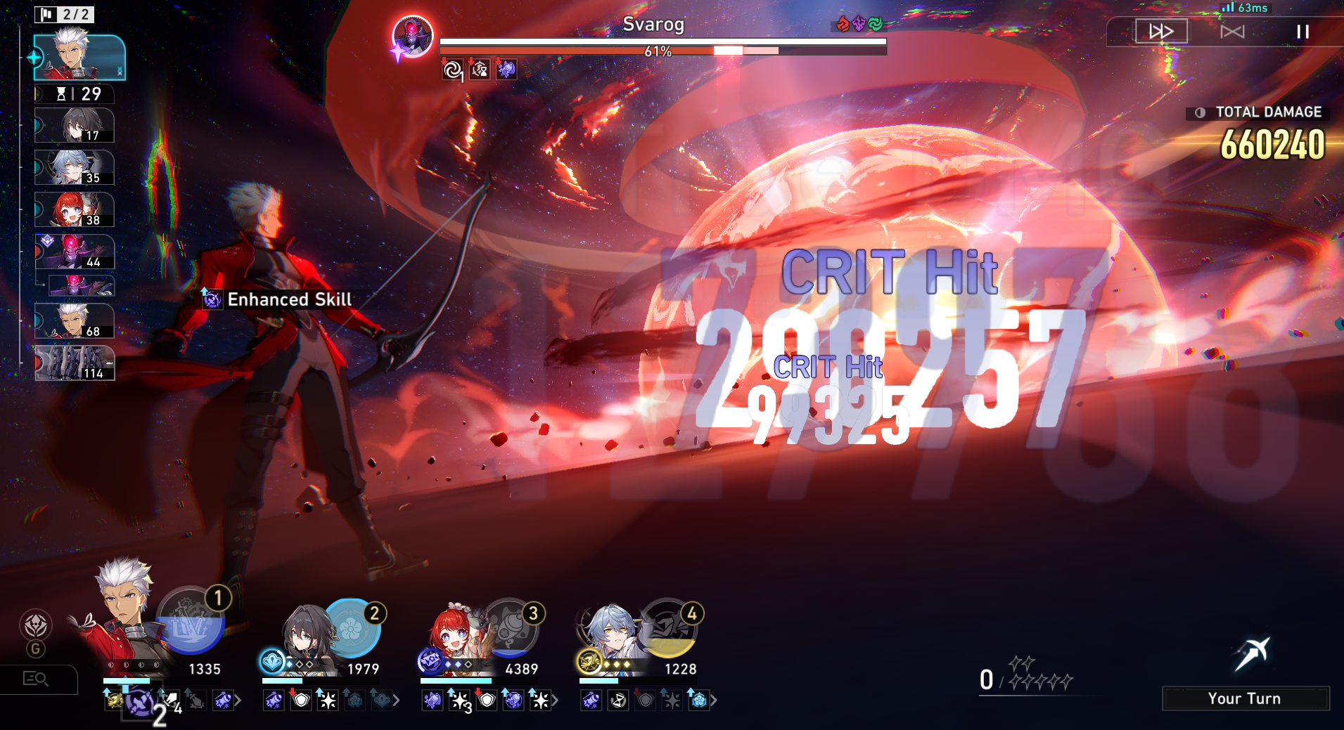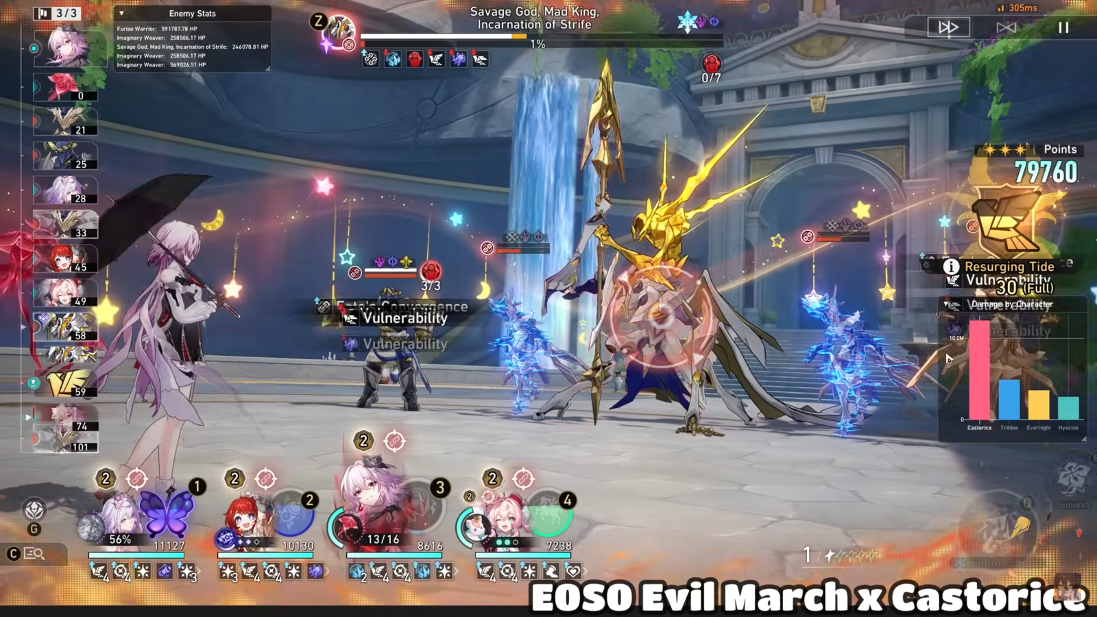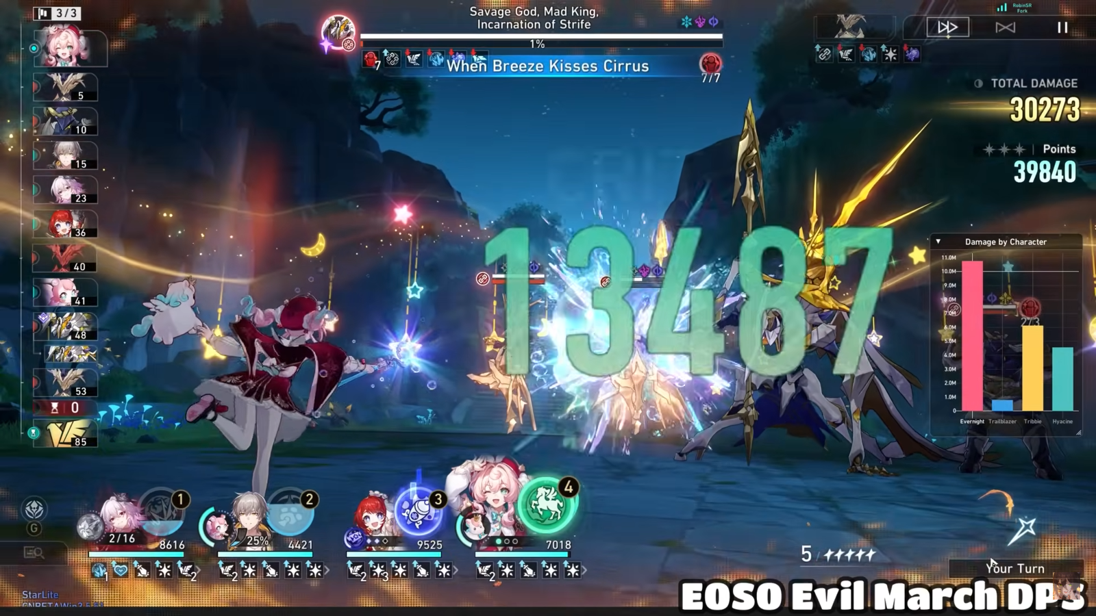 Команда с Фаеноном прошла за 1 цикл, с 26 очками действия в остатке Команда с Касторией прошла за 0 циклов, со 162 очками действия в остатке