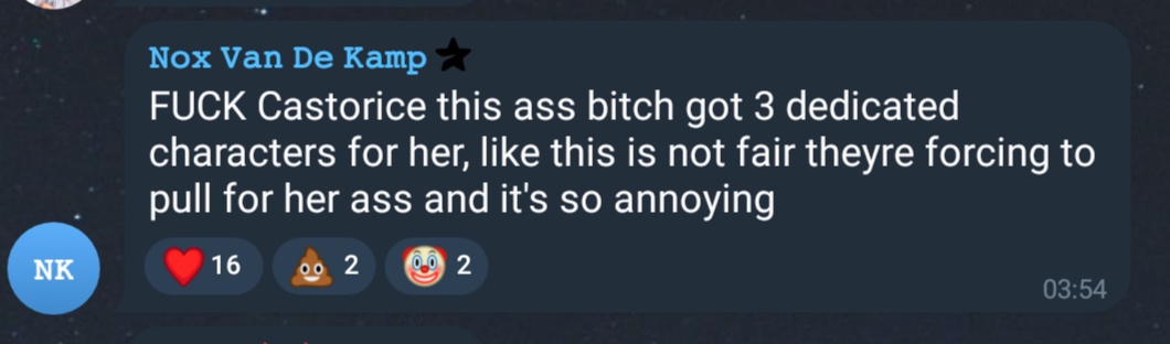 >>5410674 Бля, там написано что работает со всеми, просто с Касторией прям вах. Но нет, в твиттере тоже кинулись зрадничать, что пиздец, ебанная Касторка заебала, и вообще хардскип((((( Можете сходить у пизды hxg_diluc под постом полюбоваться на визги.