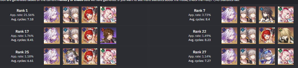 >>5412379 >Ростер вы мой видели, что там собрать на 12 этаж? Там очень много что можно. У тебя есть фул пачка фейсяо, доты без гиси (всё ещё довольно сильны из-за бафа), пачка Ахерон, пачка Герты. Все эти пачки закроют сторону за меньше 5 циклов.