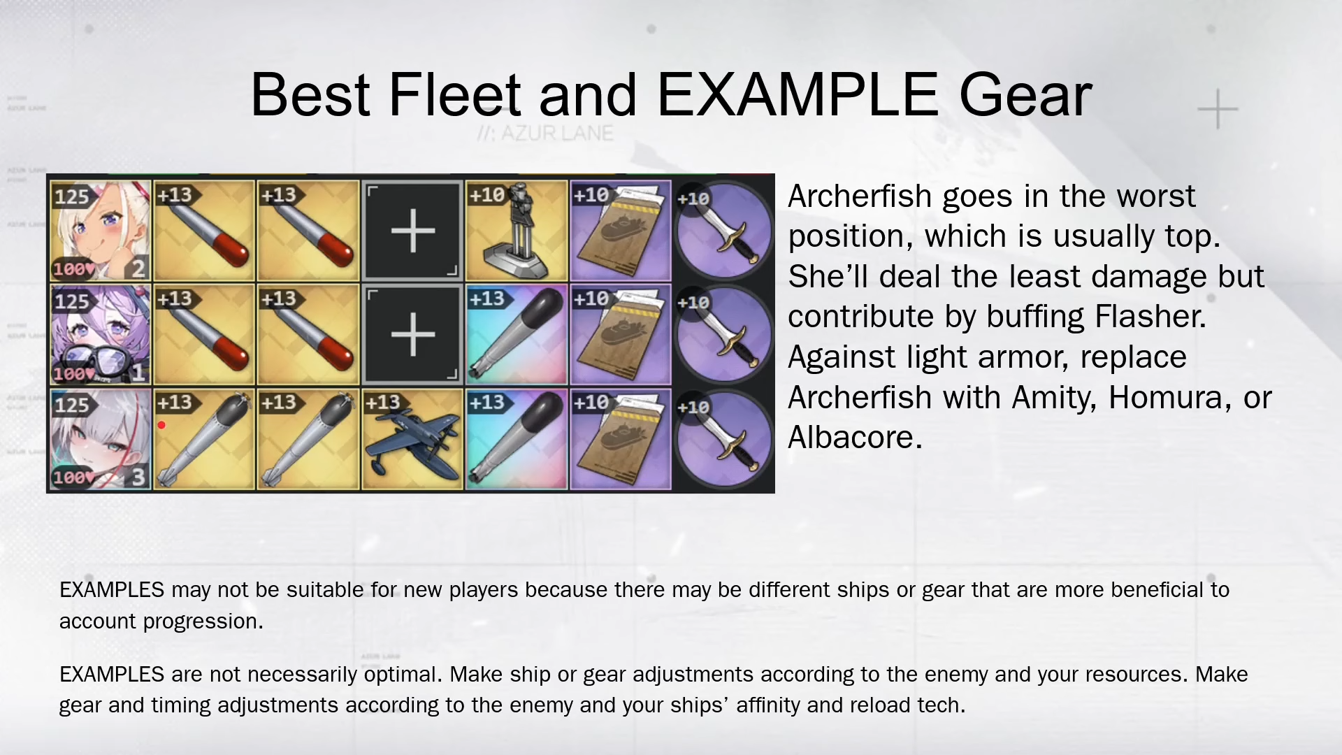 Можно начать думать головой и смотреть кто у тебя вообще есть из корабликов. Фриц довольно гибридный корабль, его можно подкинуть если противник медиум броня. Против тяжелой можно взять третим слотом Лион, подбафать ее Трафальгар (она еще и уклонение понижает у противников, доп плюс) и Плимут.