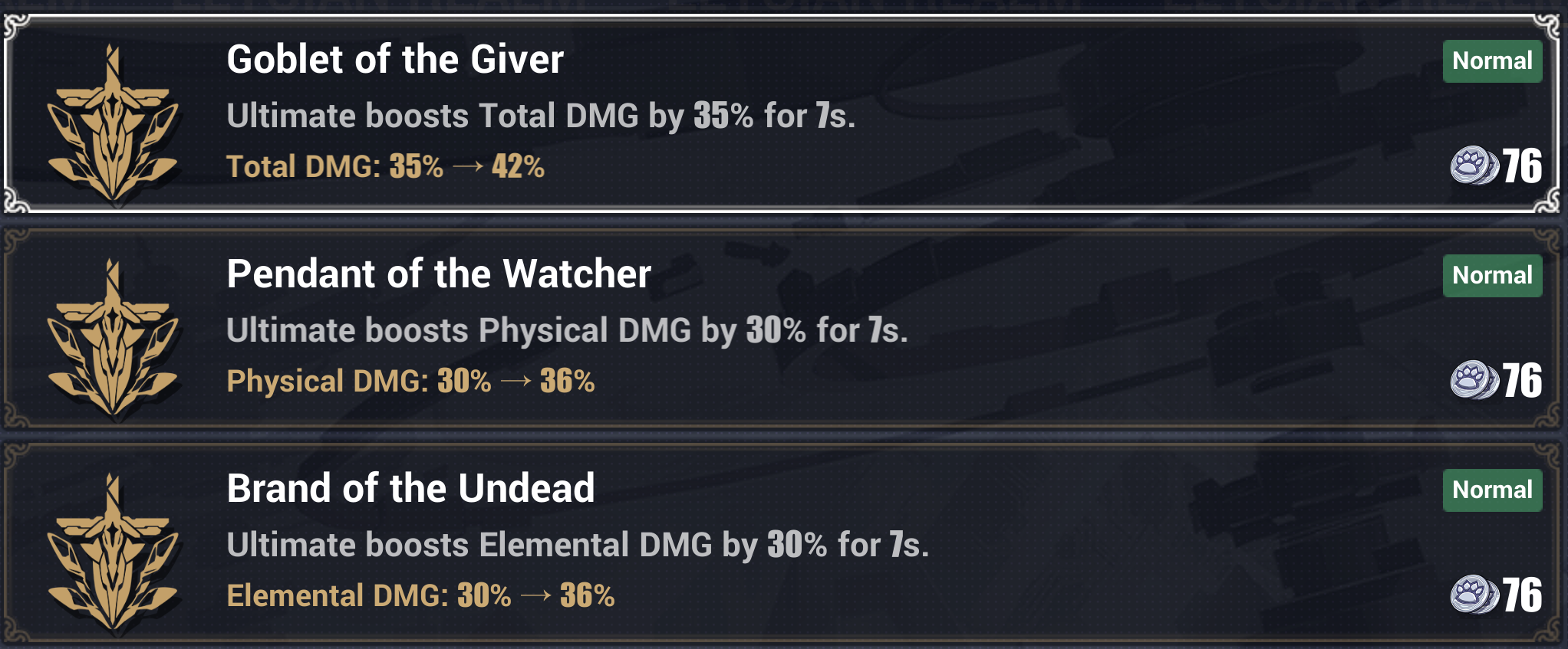 >>5628656 >Как и где фармить здешние арты (стигматы)? Игра сейчас вступила в part2. У р2 чемпиков система следующая. Эквип (оружие и стигмата) падает с баннеров Equipment Supply. Каждый такой баннер посвящен конкретной валке и с него падает эквип только на неё. Гарант 60 в баннере - на оружие. При этом дропрейт оружия очень низкий, а стигмат - высокий. Это нужно, чтобы разбирать лишние стигматы на призмы, используемые для апгрейда стигмат. За те же призмы все эти стигматы можно крафтить (если вдруг свезло на ранний дроп пушки или ты выкрутил чемпика, а крутить его эквип не хочешь). Сигнатурные оружки не крафтятся. У старых валок р1 есть отдельные баннеры снаряги, их трогать не рекомендуется, правила там другие, крафтинг очень дорогой. Сами р1 валки паверкрипнуты в хлам, но для некоторых из них выпустили новый р2 эквип, превращающий их в р2 валок. Эффекты стигмат фиксированные и большей частью привязанные к соответстующему чемпику. Разве что можно накручивать на стигматы аффиксы - это небольшие прибавки к статам, здешний минмакс.