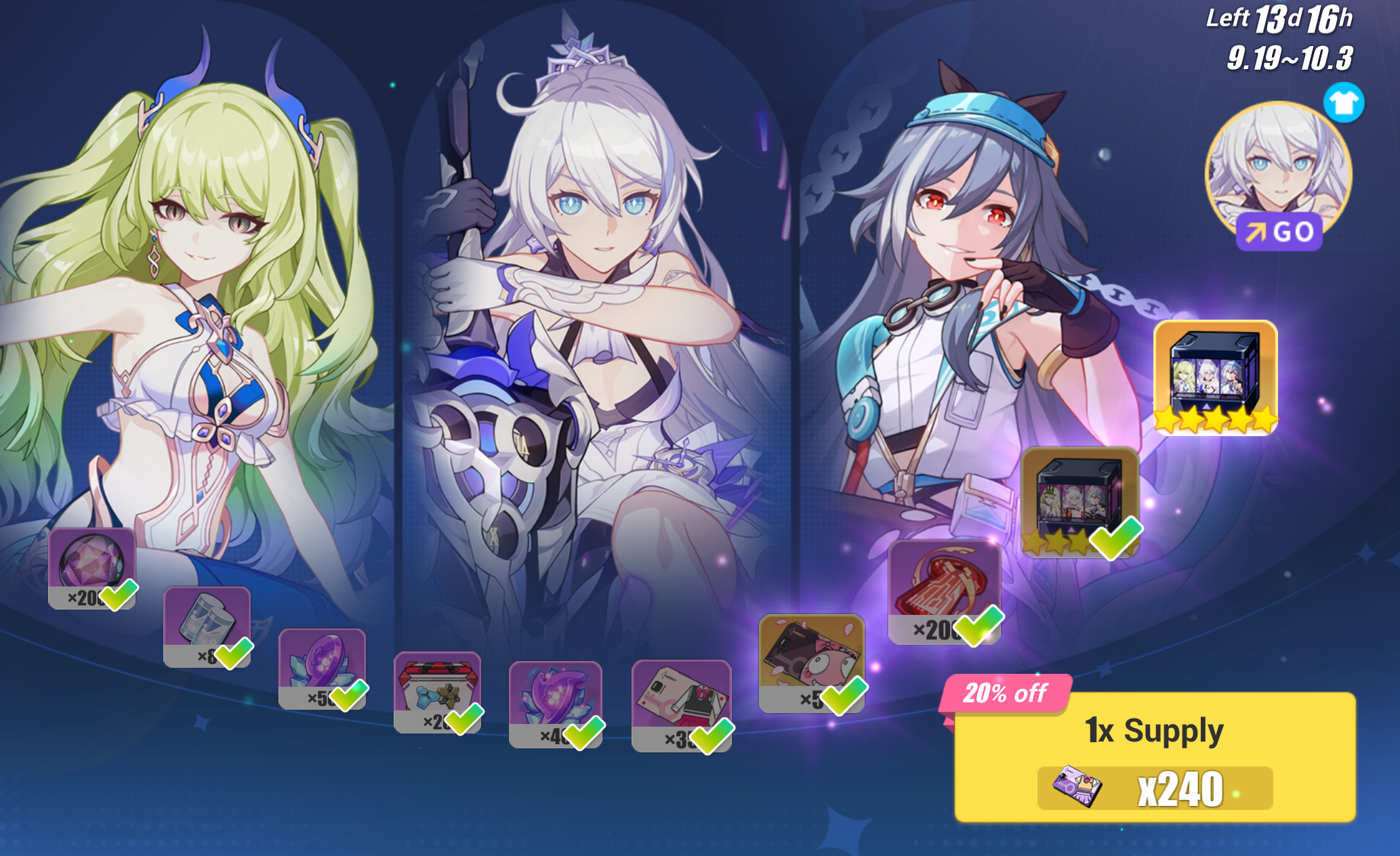 >>5797409 > Dorm Supply за билетик лучше не трать их, тратить исключительно в спендинг ивенты их, нужно по 20 штук в каждый спендинг туда залить для выхлопа. + Короче если будешь играть и забирать условную киану, то скорей всего ты как раз с этого спендинг ивента телему залутаешь. А если бп оформишь, то еще и пуху для нее, а стигмы хз ньвжушку через пару тройку месяцев мб скрафтишь хз.