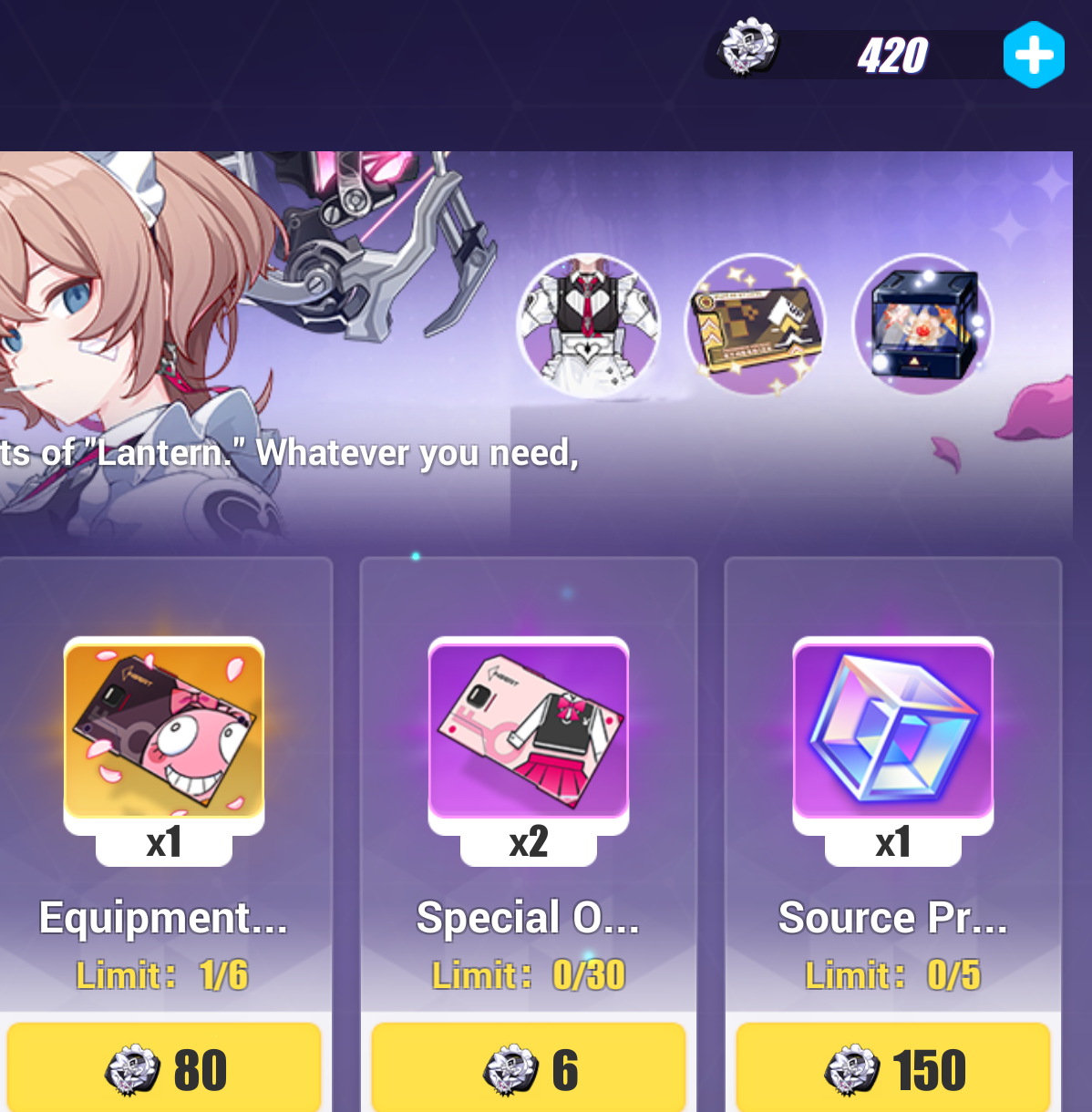 алсо вот банер корали сейчас. вот тут персонаж. внизу эквипман это пуши + арты на нее. астрапопы не крути не нужны тебе сейчас. аутфит это скин так же не нужен. домр можешь покрутить халявные, скока там 20-30 круток на 1 чара, потом как обычно 90круток будет на 1, но все равно эти вальки устарели уже + лучше их не тратить просто так, потому что есть такой ивент как Спендинг, сейчас есть небольшой и в некст патче будет - смысл тратишь крутки и получаешь плюшки. Но в домр (стандарт) банер можно только 20-30 круток закинуть и с них кешбечный ивентовый айтем падает, больше не дадут. Так что имеет смысл оставлять на такие спендинг ивенты.