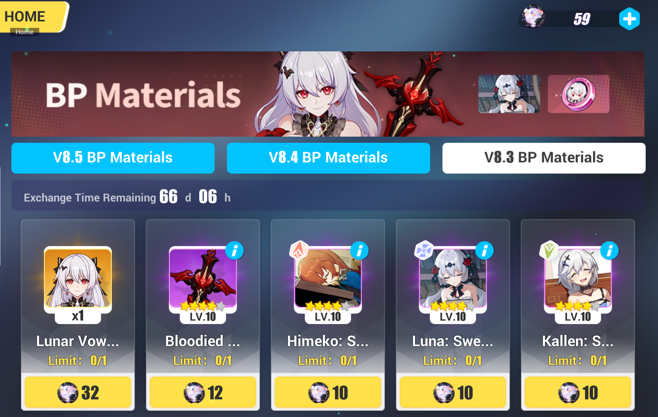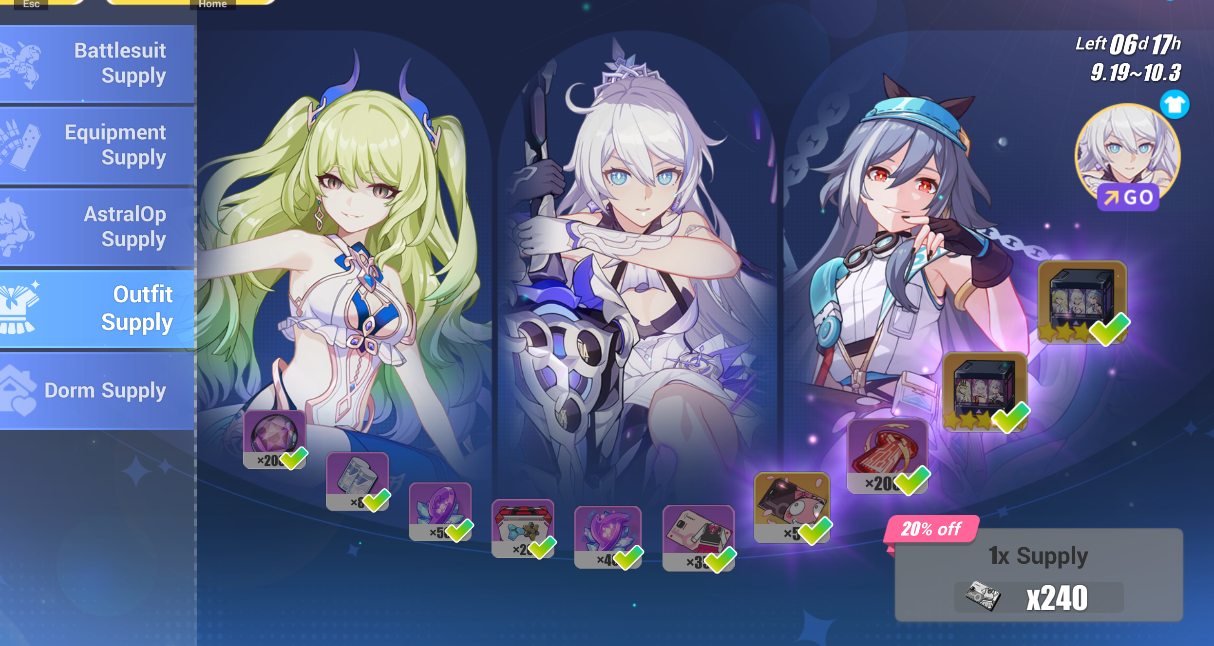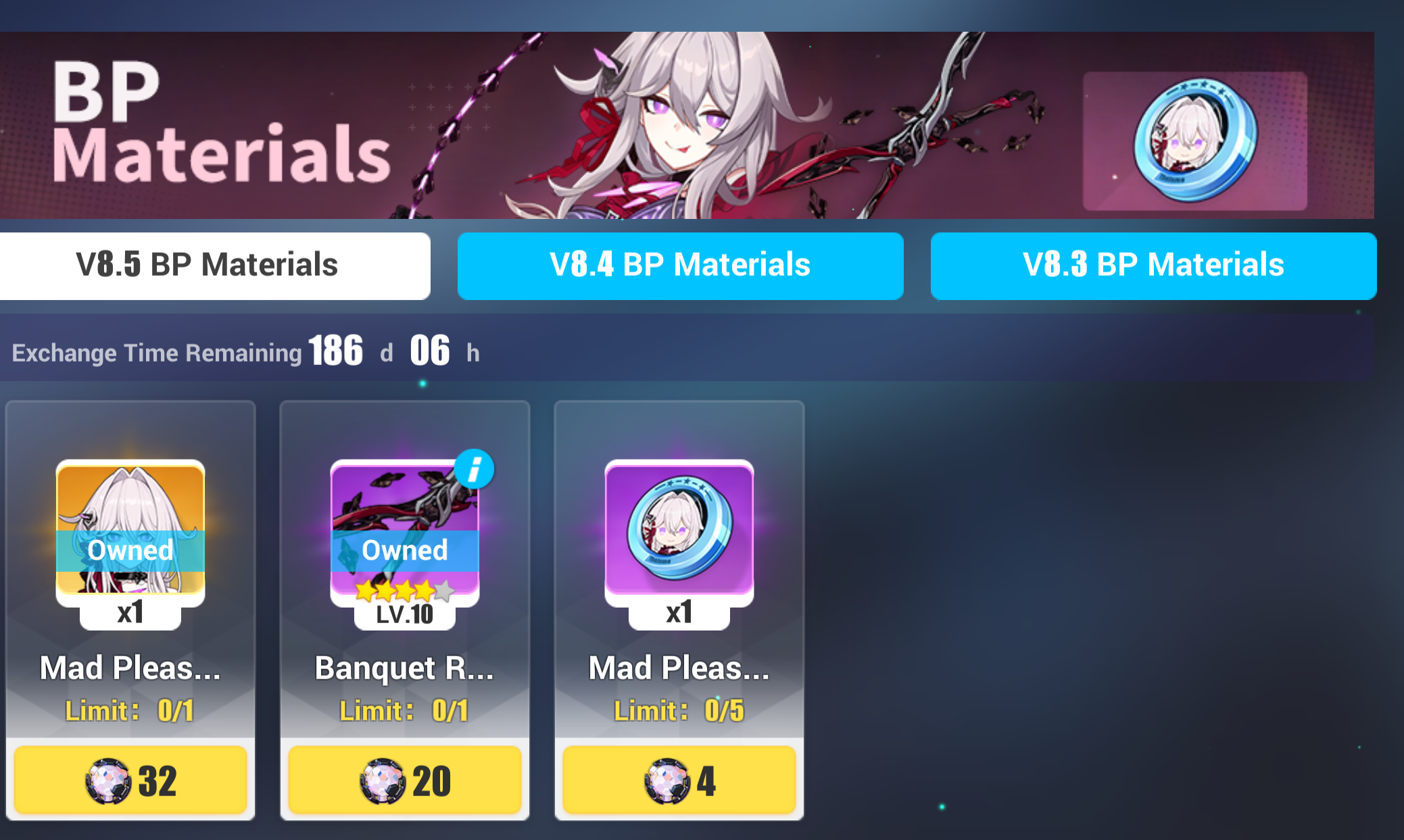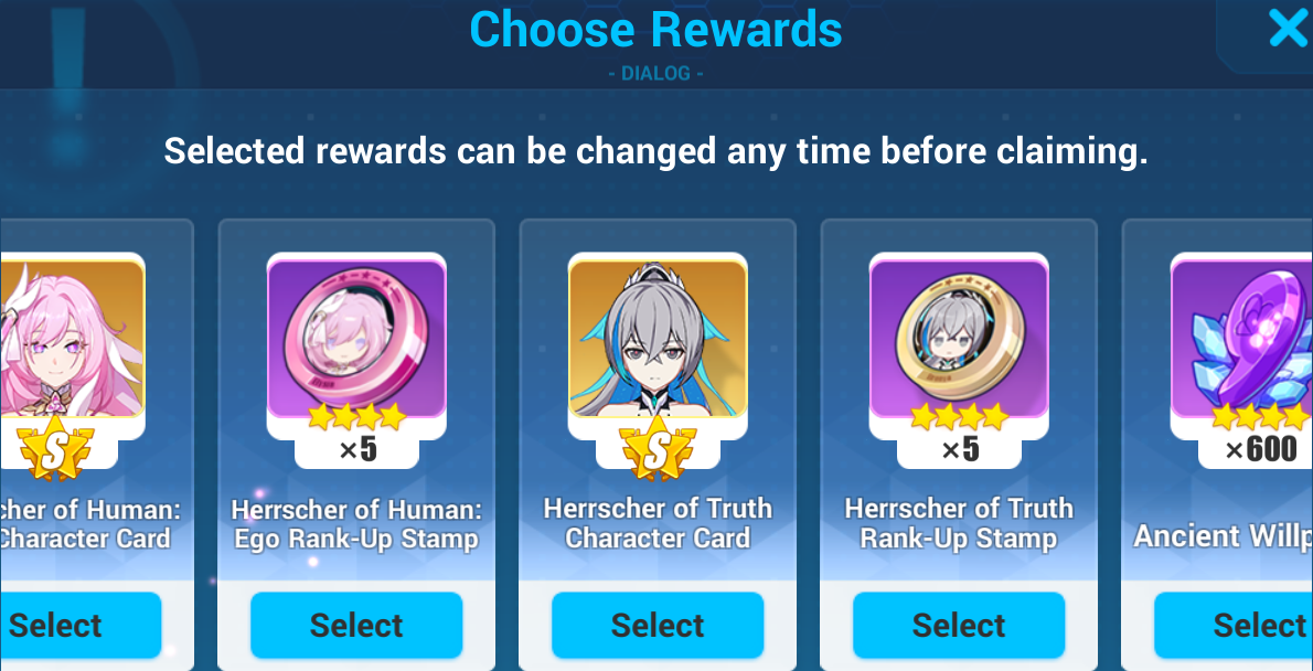 Магазины ◈ Exchange Shop: Добавлены рекомендуемые экипировки Spina Astera и Reverist Calico. ◈ Supply Shop: Штампы Herrscher of Human: Ego заменены на штампы Deepspace Anchor: First Light. ◈ War Treasury: Добавлены карты персонажей Silverwing, Palatinus Equinox, Spina Astera, а также их фрагменты.