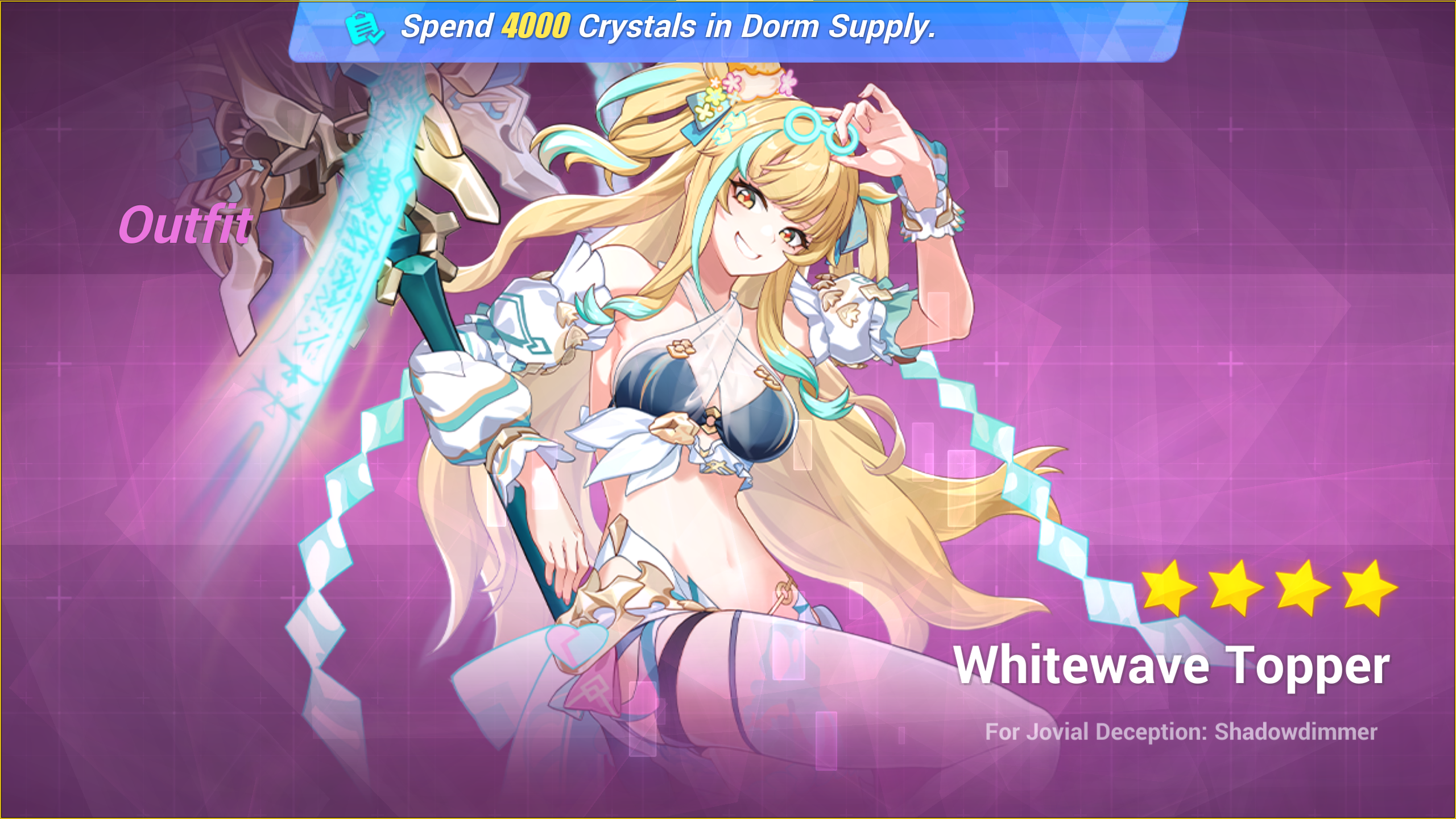 Большое событие на трату кристаллов ◈ Награда за трату 30000 кристаллов: наряд «Радостные волны облаков». ◈ В магазине события можно приобрести карту персонажа Mad Pleasure: Shadowbringer и её штампы, штампы Deepspace Anchor: First Light и прочие обычные награды.