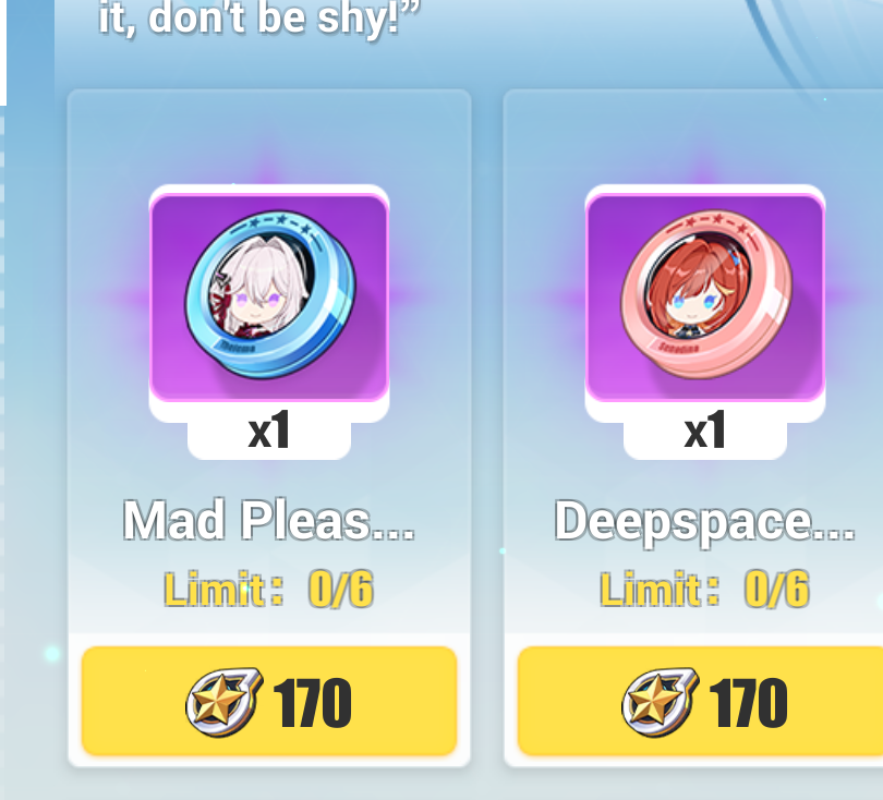Я если честно грешным делом подумал, что ляо после получения эмблемы разлочит ежедневные лимиты чтобы можно было спокойно пофаниться и весь магаз выкупить, но ляо умнее и предлагает мне каждый день заходить на 3 катки в течение месяца...и все равно не выкупить весь магазин оставив там 2,68 миллиона. Новый перманентный режим?