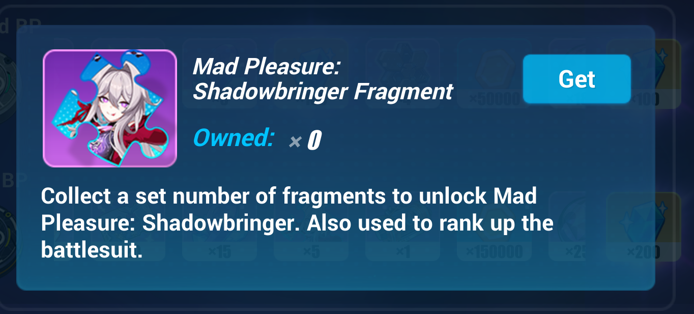 Боевой пропуск ◈ Основной магазин: добавлены карта персонажа Mad Pleasure: Shadowbringer, её штампы и рекомендуемое оружие. ◈ Резервный магазин: добавлены карта персонажа Herrscher of Truth, её штампы и рекомендуемая экипировка. Добавлены оружие Twirling Glaze и сет стигмат Aladdin.