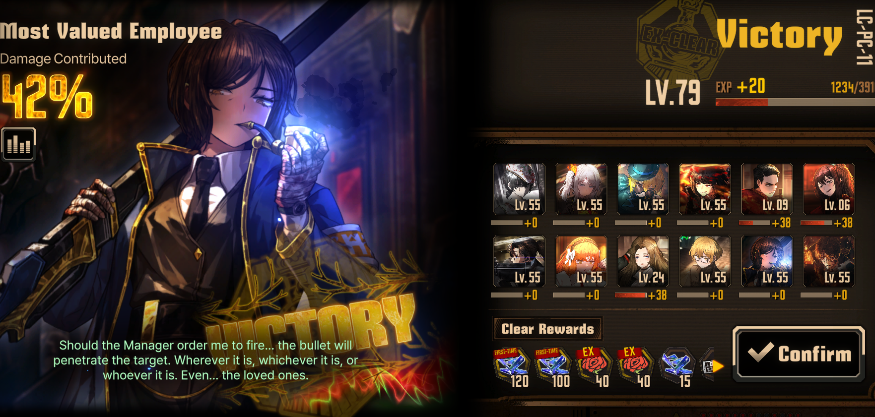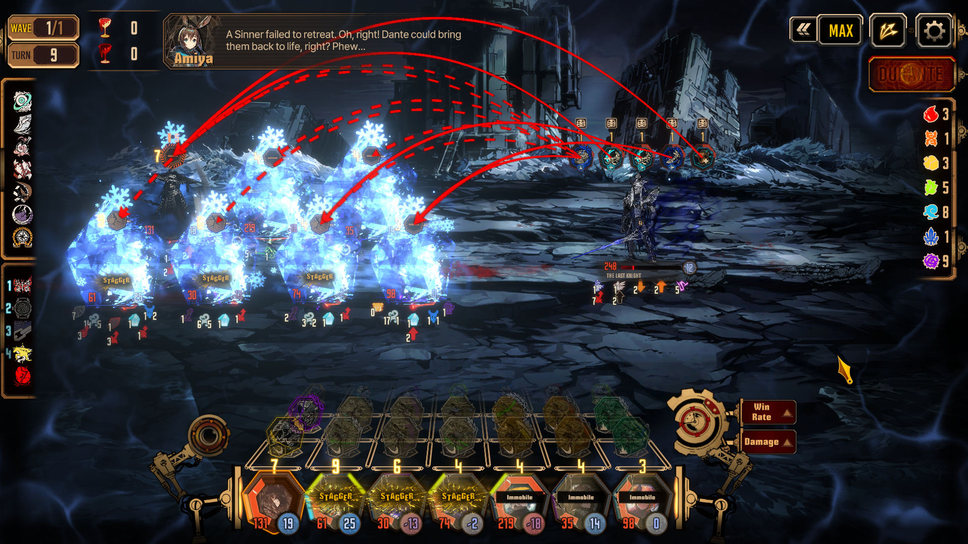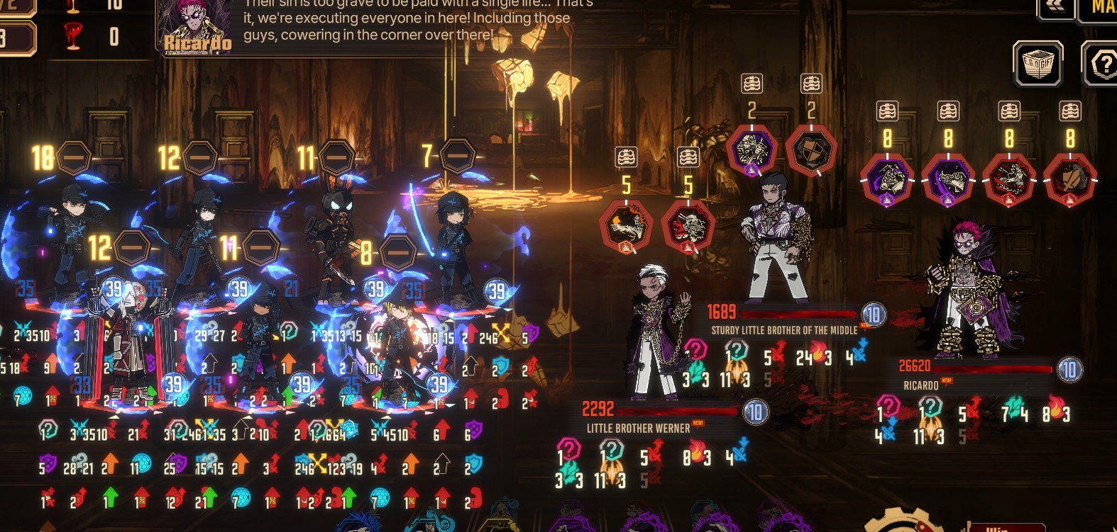 Я сталкиваюсь с такой штукой, что под последние этажи мои чуваки вообще клэши не тянут в первый ход, а дальше уже попроще +-. Но если моя цель 50 поинтов усилений, то без удалённой первой полоски стаггера, возможность пробить и дебаффнуть хлопком босса нереально, цифры хп и дефа просто огромные. Собсно я и прихожу к мысли, если я жертвую пару челов в первый ход, то в целом то потом я без шансов должен выносить всеми оставшимися. Да и в целом закрытие каждого файта по отдельности быстрее банально по времени будет Я дурак или не дурак?