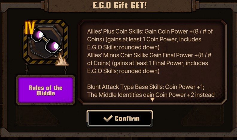 >>5562958 Произошло недопонимание. Эго гифты конечно можно за старлайт подобрать, это всё правильно, но я имел ввиду, что при солохождении цепляешь все прокачанные ЭГО (waw) на инвалида, по ходу прохождения добираешь эго (гифты) на генерацию грехов и гифты на применение эго типа fragment of fire и с 11 по 13 этаж не вылезаешь из коррозии металла с довольным ебалом.