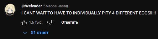 Падажжите, нихуя не понял. Сейчас же будет мёртвая неделя, а потом ивент, где 1 баннер на все эго, так? Я чёт подумал про 1 баннер - 1 эго и чуть не обосрался от хохота.