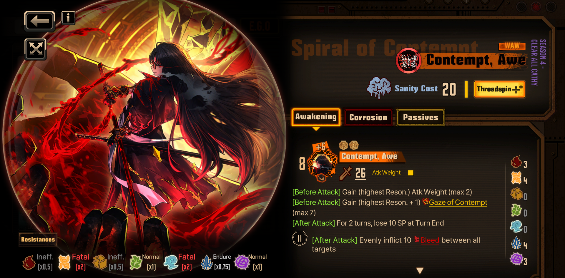 Кстати, если бы кал лаб был двухсторонним, то каких врагов мы бы отправили воевать с родосом, и какой механикой поделились бы с дохтами? Красные монеты из-за другой боевой системы не подойдут. Блид, руптура, бурн и прочие статусы с дополнительным уроном это неинтересно, его все равно прохилят. По идее можно переизобрести синкинг путем отнимания сп на скиллах, но это уже есть в элементальном уроне от некроза. Или переизобрести тремор, станы в игре тоже есть. Тут я еще хотел спросить, каких синнеров и с какими айдишками можно отправить работать на родос, но понял, что получится лютая анлорная хуйня, ведь без Данте бомжи могут только эго прожать и нафидить - респауна нет, айдишек нет, крутых эго нет, коррозии тоже нет, ведь стоковые эго её не имеют. Без этих приколов бомжи по статам совпадают с обычными людьми, на поле боя свагу не демонстрируют. Получается, Джихуй умный? Он не захотел обосраться с каллабом еще сильнее, чем уже сделал