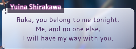 Я считаю, что сейчас нужно обязательно выкрутить унисон Руку - весьма смелый образ с пикантной деталью в виде zettai ryouiki. После наилучшим решением будет накопить 45000 кварца на абсолютно сногсшибательную диву Руку в роскошном, практически свадебном платье! Также было бы преступлением не отметить дерзкие и стильные сценические образы Руки, не заполучить которые было бы очень обидно, хоть я, скрепя сердце, и признаю, что тратить на них ценный ресурс в виде что времени, что кварца, пожалуй, не самое лучшее решение. Следует, однако, подчеркнуть, что всё вышеописанное - сугубо моё личное мнение, видящееся мне, насколько возможно, беспристрастным.