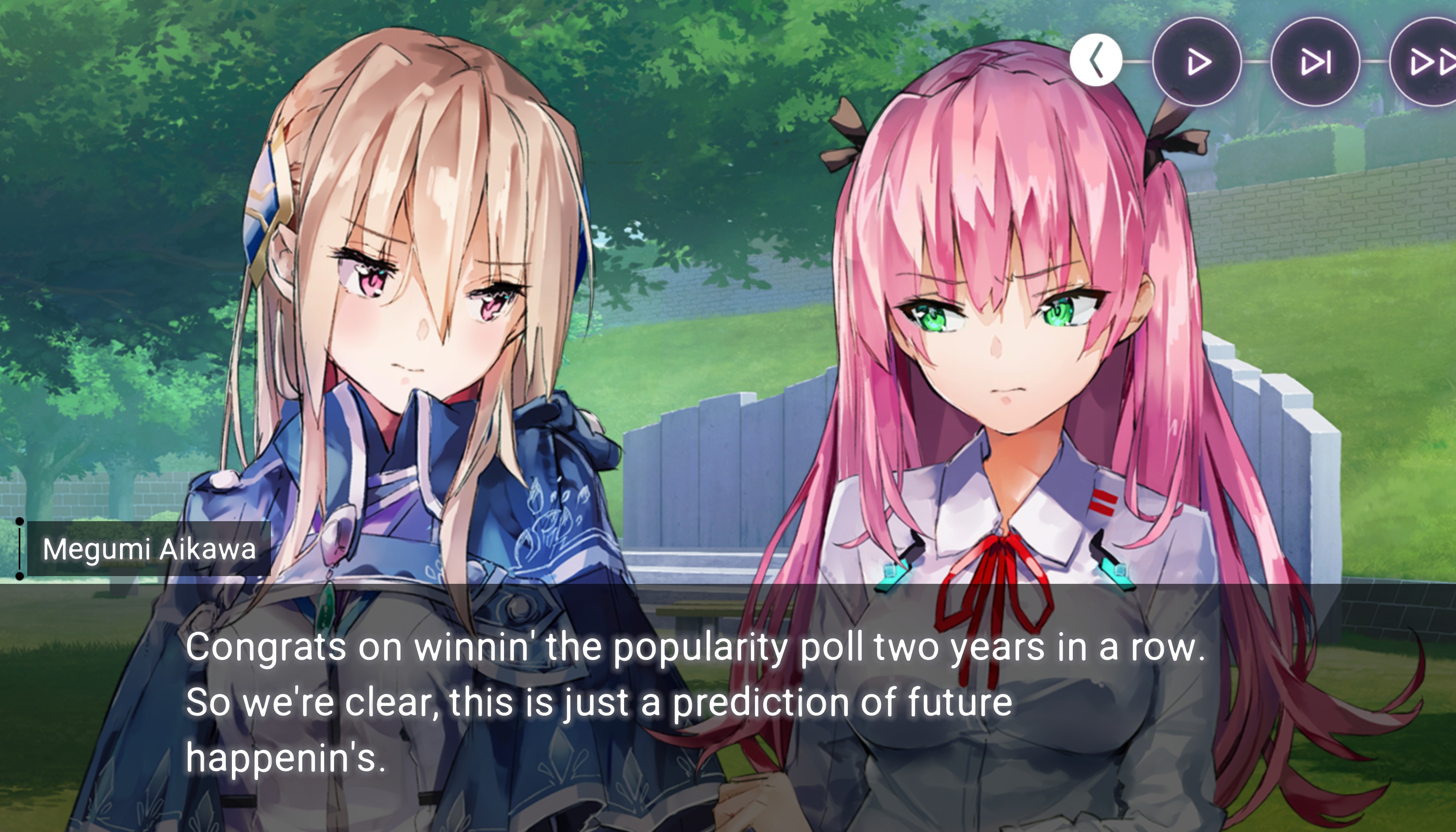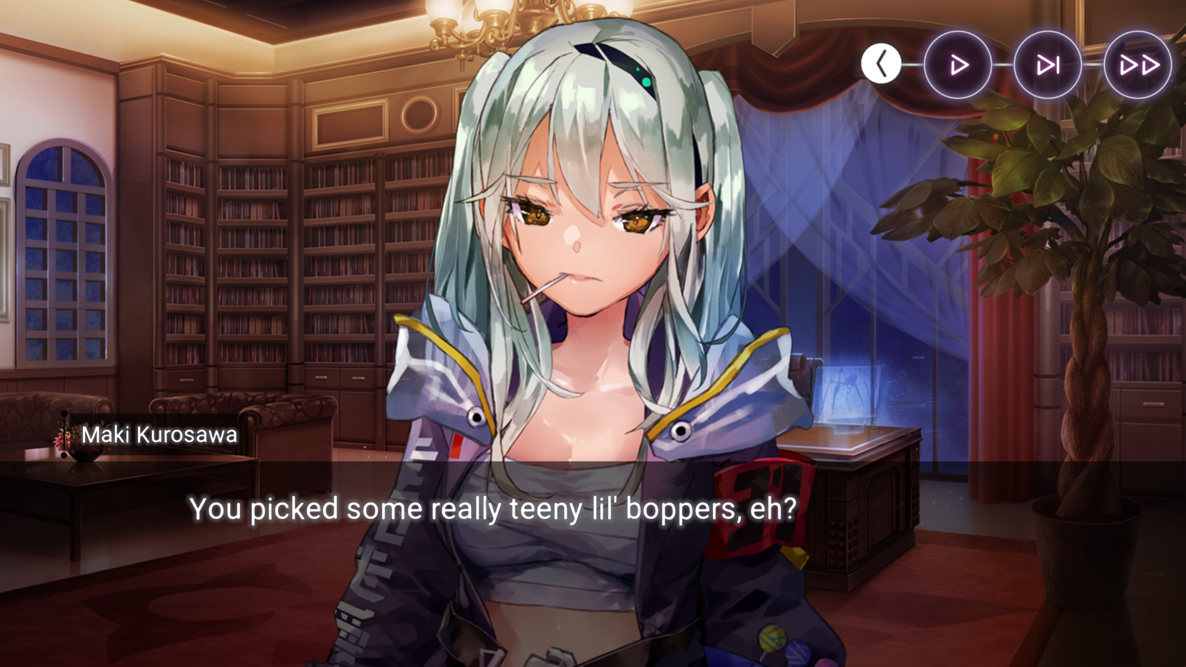 А с Хисако... Ну да, закончили и закончили. Развязка скомканная и без изюминки. Может и получилось бы сделать плавнее и интереснее, но один не умеющий писать кратко человек не сумел совладать с узкими стандартными рамками третьего дня ивента. Второй день отдан под предысторию, то есть под 1-в-1 копипаст сцены из новеллы (я думал это подсократят и местами перефразируют, но нет, полный ctrl+c - ctrl+v текстдамп, вообще никаких отличий, только монохромные арты добавили), вот и получается что весь значимо-свежий AB-шный контент ивента ужался до последнего разговора с по щелчку обмякающим Кирисаки. Meh. Но по крайней мере на этот раз само коллабное взаимодействие целостным вышло, со своими фишками и без убиения "хаб-тира".