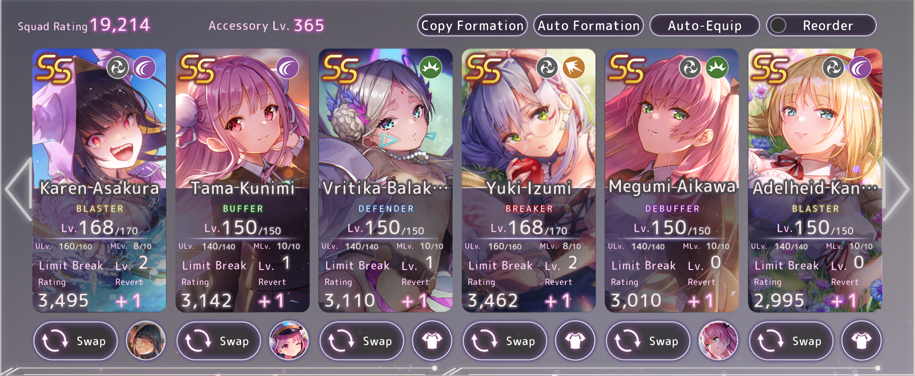 Всем спасибо за советы. Я и забыл насколько тяжко тут реролить, но вроде повезло с первой же попытки после прохождения первой главы. Из рекомендованного в треде баннера пришла Риза и Рука. Полный скриншот команды прикреплю, но на данный момент встал вопрос: а нужны ли мне 3 хила в одной команде? Судя по советам стоит упарываться в одну команду, а дальше дело прокачки и мой ростер намекает на огонь и разрез. Правильно ли я понял намёк игры и стоит ли добирать остаток команды по принципу совпадающего типа урона вне зависимости от редкости или я сосну из-за капа уровня у А и S- это первое и как сильно я сосну без нормального танка - Чиру я помню, это няшный пиздец, но всё же пиздец, это второе. Откуда столько SSок я так и не понял. Они как бы сами по себе появились.