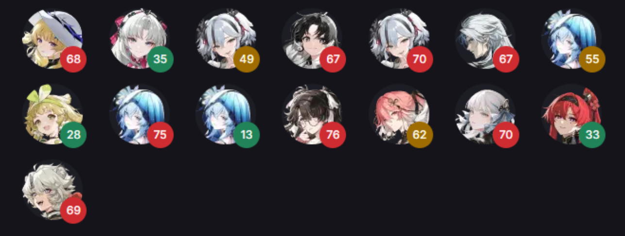 >>5592768 Так по трекеру с реальными людьми, а не табличками, которые хз кто пишет, Фролова собрала как прочие сильные персонажи. Получается, что вайфу фактор > меты в вуве.