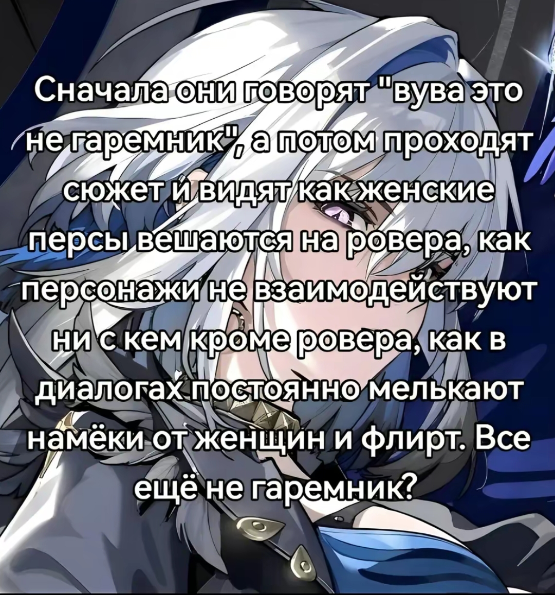 >А полезные идиоты вроде тебя Понимают что пришли играть в гача игру, в которой всегда будет и паверкрип, и распилы. И одно дело, когда ты умея играть на персе под правильные бафы закрываешь контент, в то время как "вайфу энджоеры"без с6, кстати что-то кукарекают про баланс, играя на похуй.