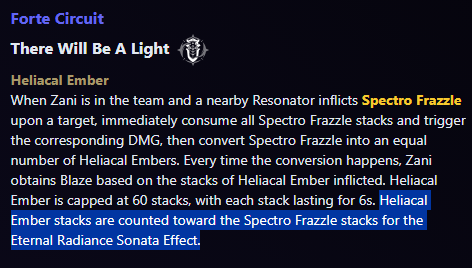 >>5597228 >не работает Не работает, т.к. нужно нанести урон врагу с фразлом, а зани все фразлы моментально конвертит в свои стаки. У зани есть ремарка в форте что её стаки считаются за фразлы, но только в контексте крит спектро сета (это работает в том числе и для фиби).