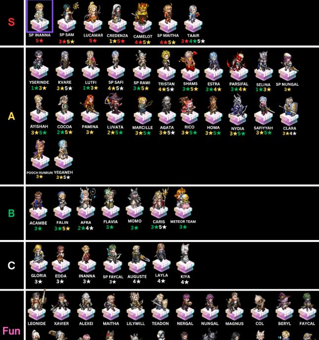 Кстати тоже решил дать блохастой хотя бы 3 звезды. Как раз один слот есть, Нидию до 4х докачал, а дальше уже лень. Будет Инанна, Саманта и Кия на каче.