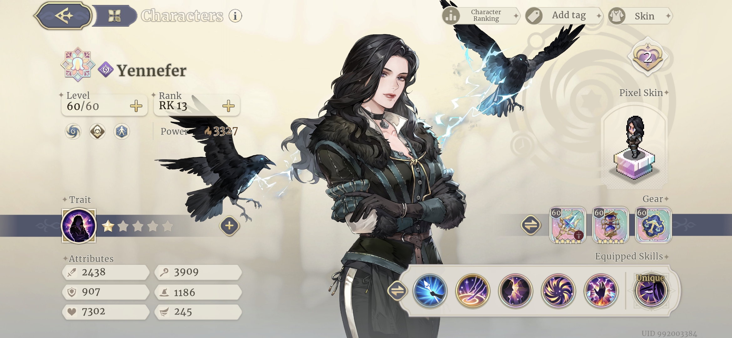 Пока что по увиденным в триале скиллам: Цири - сайдгрэйд МиниРавии Герка - толпы режет терпимо, но какой с него будет в эндгейме дамаг вообще не ясно, хотя баффы зельями от Эстры вполне норм. Сгодится. Но медленноват. Йеннифер - телепорт будет делать грязь. Ульта с молниями симпатичная. Ну и ее в анимешнойй стилистике не засрали в отличии от Трисс. Надо брать короче. Еще и скорость у нее хорошая. Трисс - не впечатлила. Какие-то аоешки унылые. Фу.
