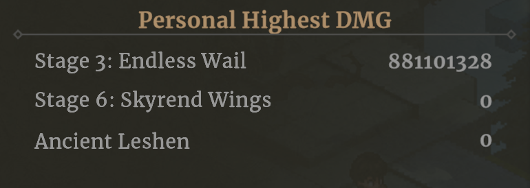 >>6164651 Обычная ранг таблица для любителей прикладной фаллометрии. В данном случае - меряемся дамагом в босса за весь бой. Абсолютно избыточные и бессмысленные циферки, если нужно просто квесты закрыть, там 50кк достаточно для MAX рейтинга.