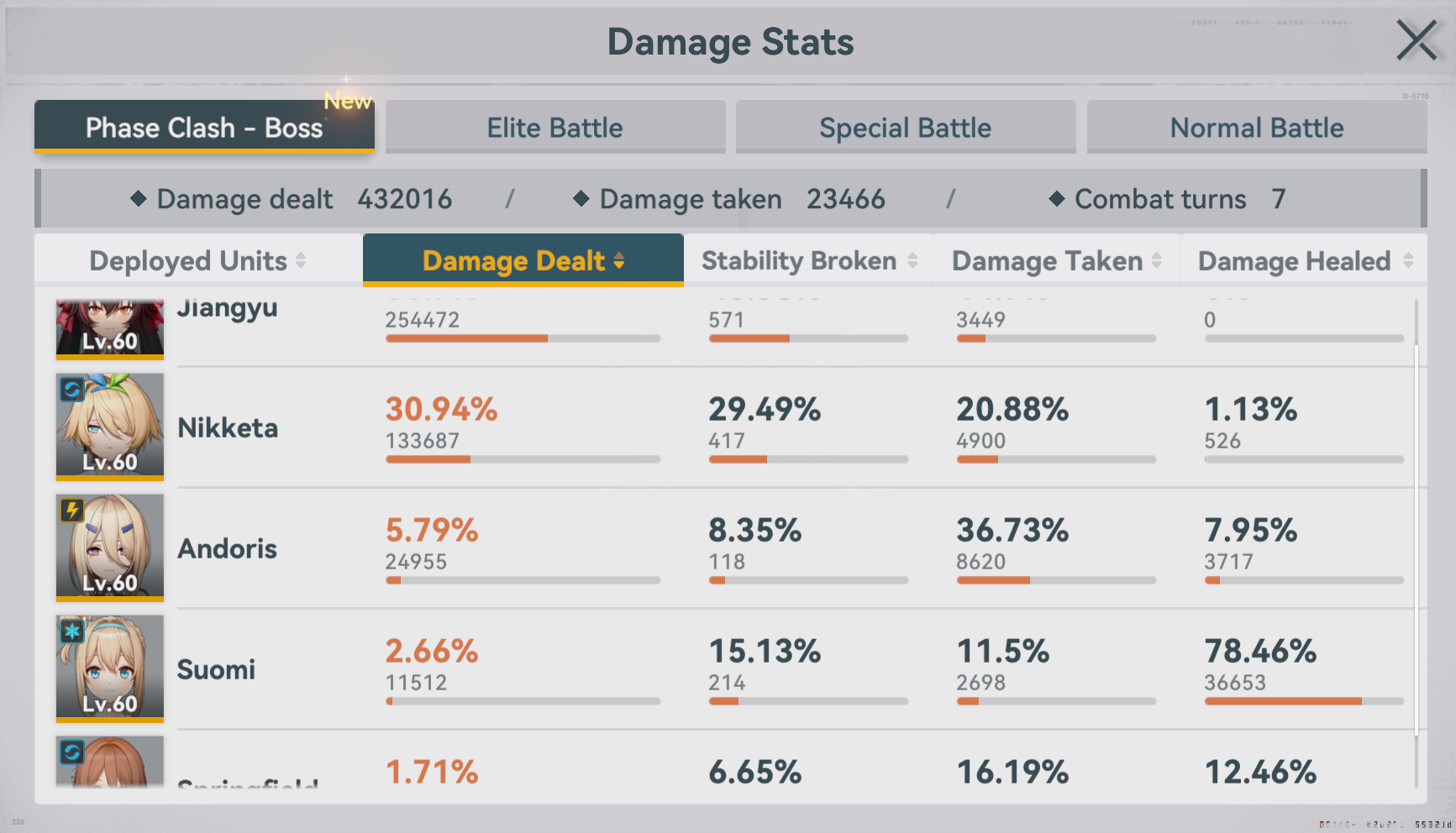 Чот электробосс не валится. Пытался пачкой андорис + жанка + ва + суоми + цинзя одолеть, не получилось. Ходы кончились, а я ему только последнюю секцию здоровья ковырнул до середины.