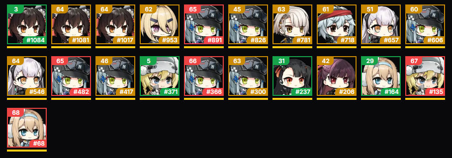 Новый тирлист от Ретемпеста. Патч Хелен Дп-12. Первый тирлист - общая полезность кукол, даже с минимальными вложениями. Второй тирлист - сила прокаченных V6 гигакукол.
