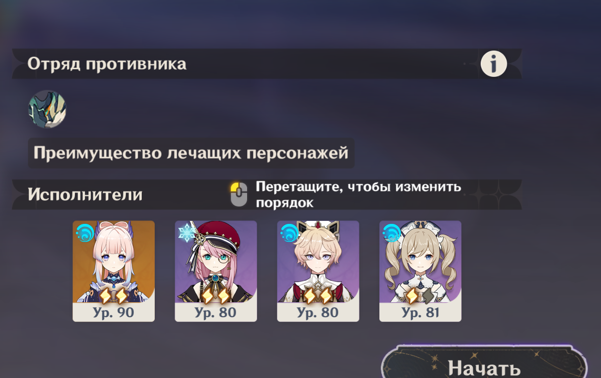 Раз в треде пошли маняфантазии, то я тоже своей поделюсь - давно мечтаю об анемо персонаже, который бы делал инфузию элемента из отряда на все свои атаки, а любые бафф процентов элементального урона переводил для себя в универсальный бафф как у Фурины. Эдакая Часка белого человека.