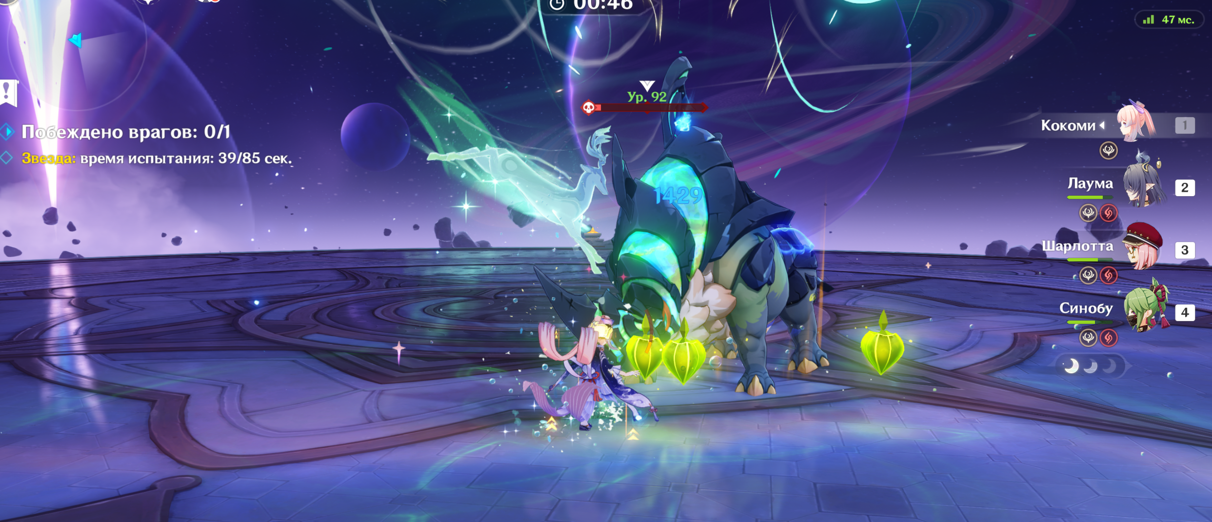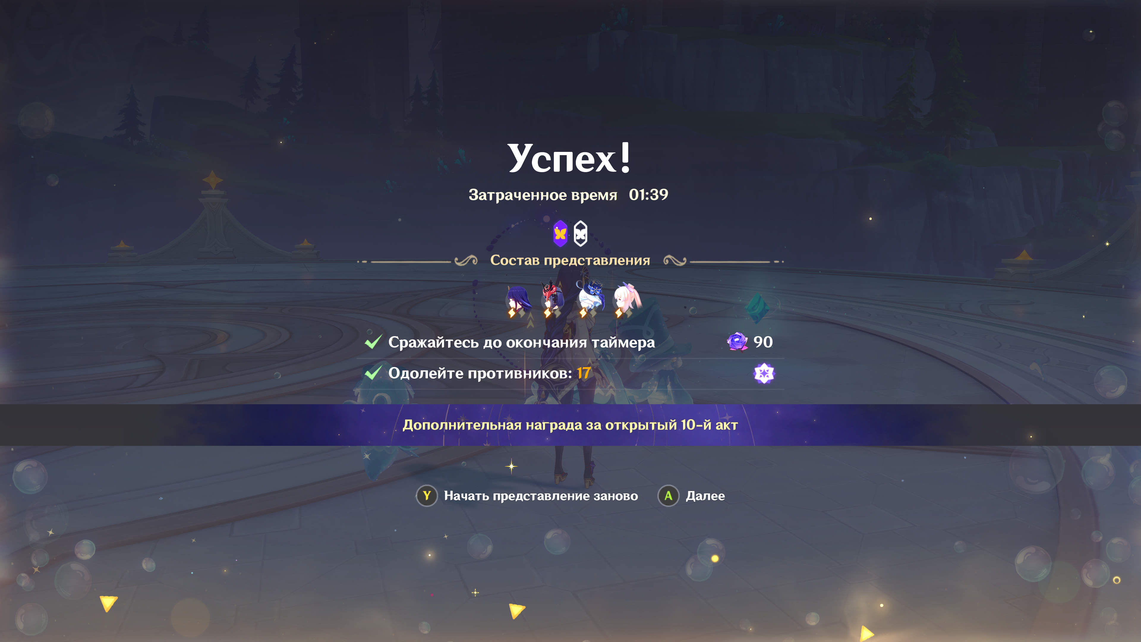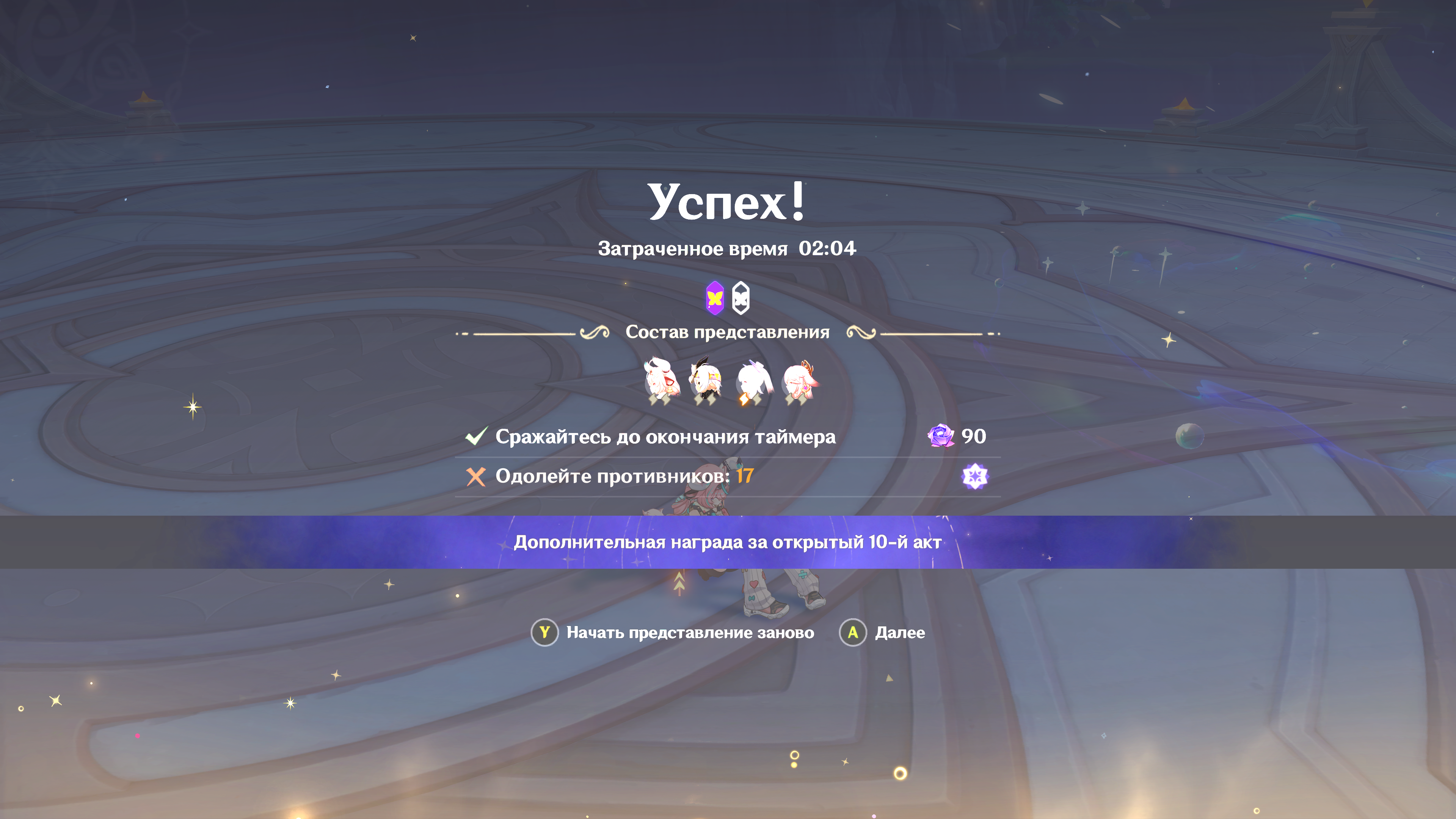 Да вроде без особых проблем проходится, сперва правда думал просто летать на Ифе и отстреливаться, но там какой-то хитрый таймер, ну и ладно, взял Елань с Дыней и пошло-поехало. Нормально крошит вражин, как бойфренда Казухи прям. И петуча пришлось ретраить, эх, сперва думал просто забить, но он таки толстенький, так что пришлось отжалеть Шилонен, тут-то без проблем уже прошлось с первого трая. Сара с артами Сянки, даже кубок на пиро, честно говоря, думал не пригодится, ну типа камон, Сара Коннор уже давно на пенсии чилит в дурке, но, внезапно, пришлось расчехлить и таки неплохо бустит, Дыня аж 240к выжала. Неплохо, как для с1 старушки.