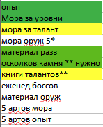 Можете примерно почувствовать, вот дали перса 1-го уровня с оружием 5 звёзд 1-го уровня и артефактами 1-го уровня, никаких запасов нет. Сколько дней надо будет чтоб вкачать его до 90+оружие+1 талант+5 артов до 20 используя только накапывающую ежедневно смолу, то всё что в таблице вы фармите за смолу?