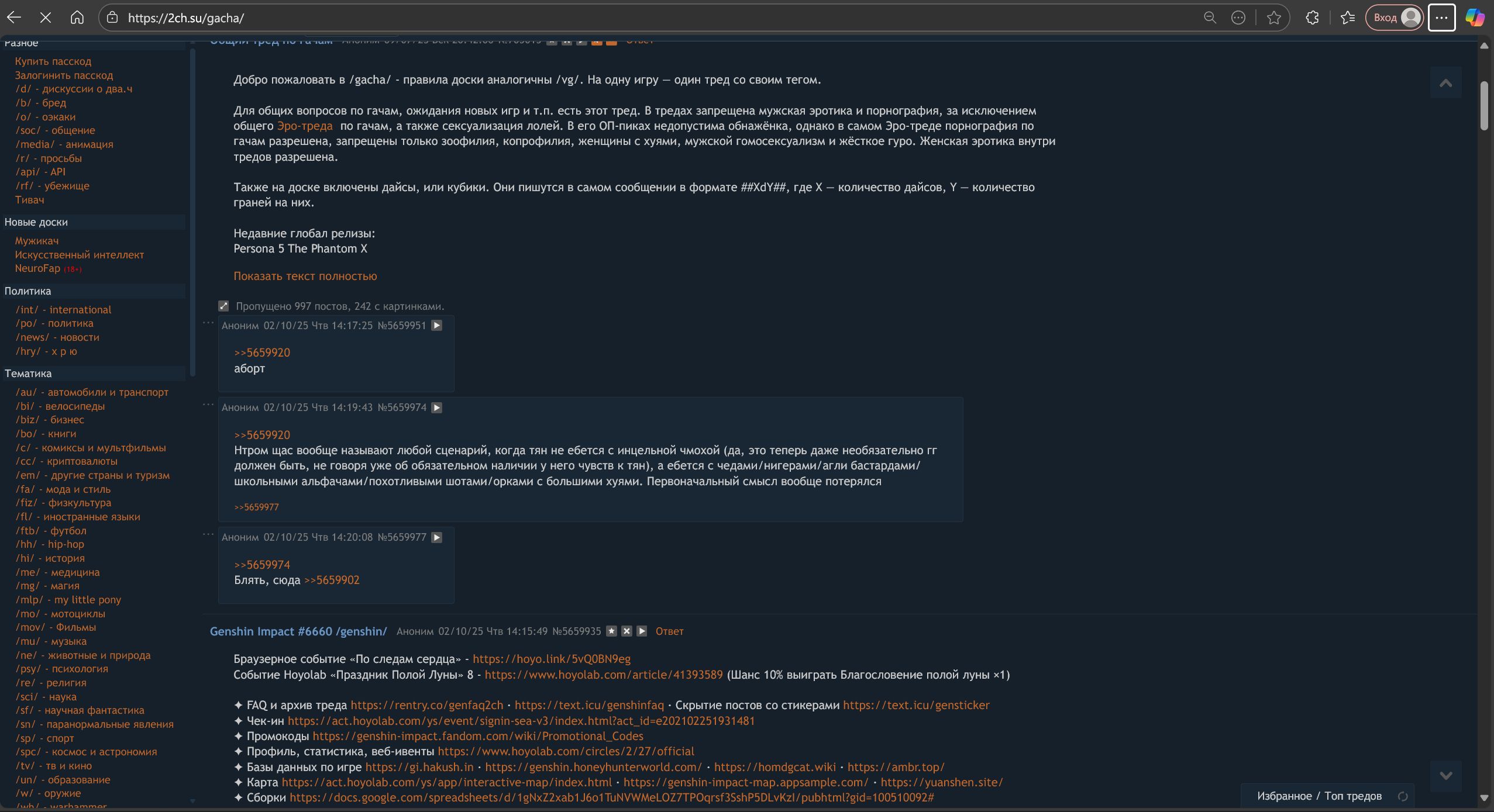 Ага. Ну точно, вот в /гача/ все картинки удалены если с нового браузера заходить, где не открывал до этого. Ебало можно представить? Лучше бы порашу закрыли и прочее говно...