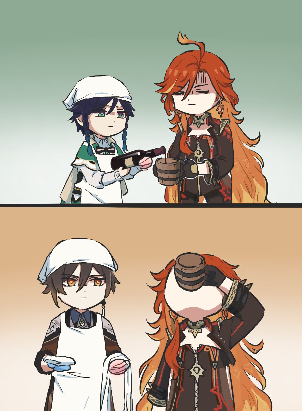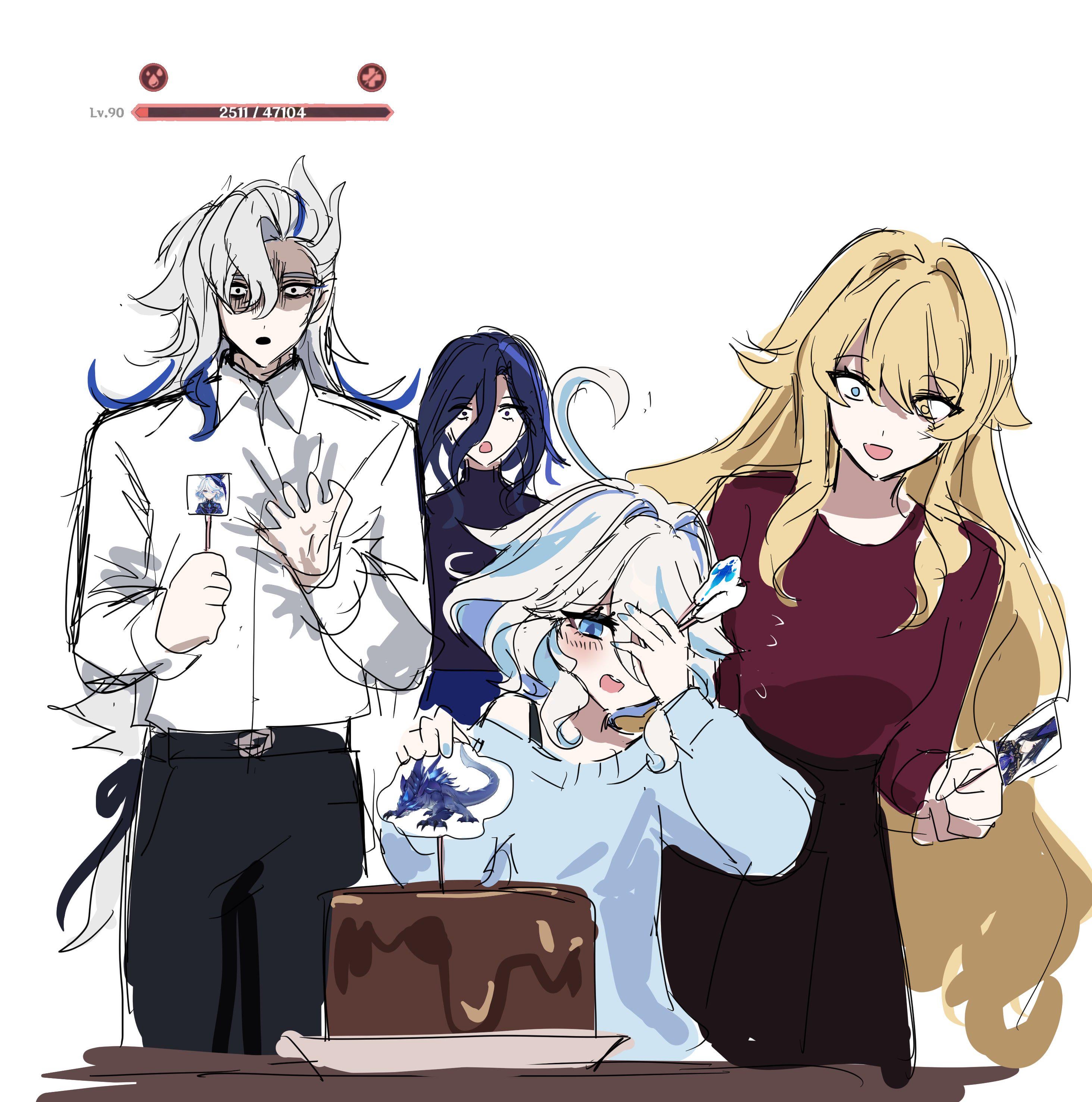 1) Орех 2) Фурина 3) Орех и Фурина 4) Орех в костюме Фурины 5) Фурина в костюме Ореха 6) Базилет 7) Фурина и Базилет 8) Арлекино 9) Фурина в костюме Арлекино 10) Всё вышеперечисленное в любых пропорциях