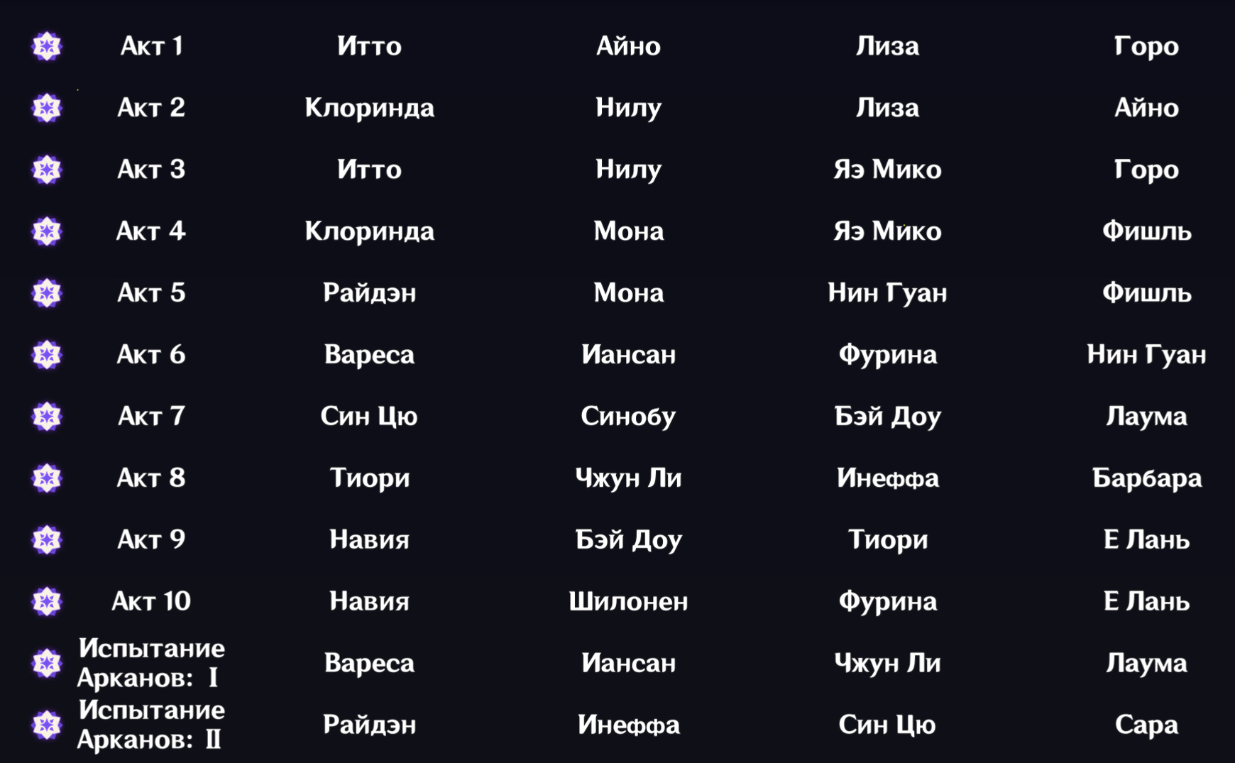 >>5659935 (OP) Список персонажей, доступных для переката в Геншин треде: