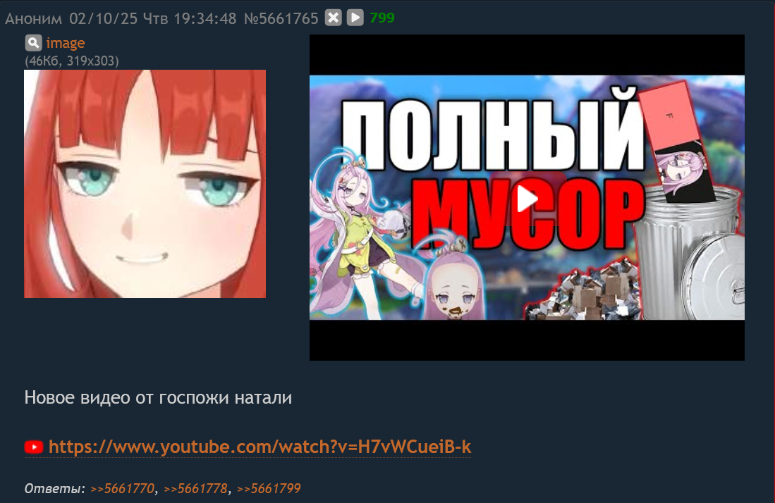 >>5661765 Было бы здорово, если бы анончики вместе со ссылками на ютуб прикладывали скриншот превьюхи. Хочется знать, ради чего подрубать впн на компе.