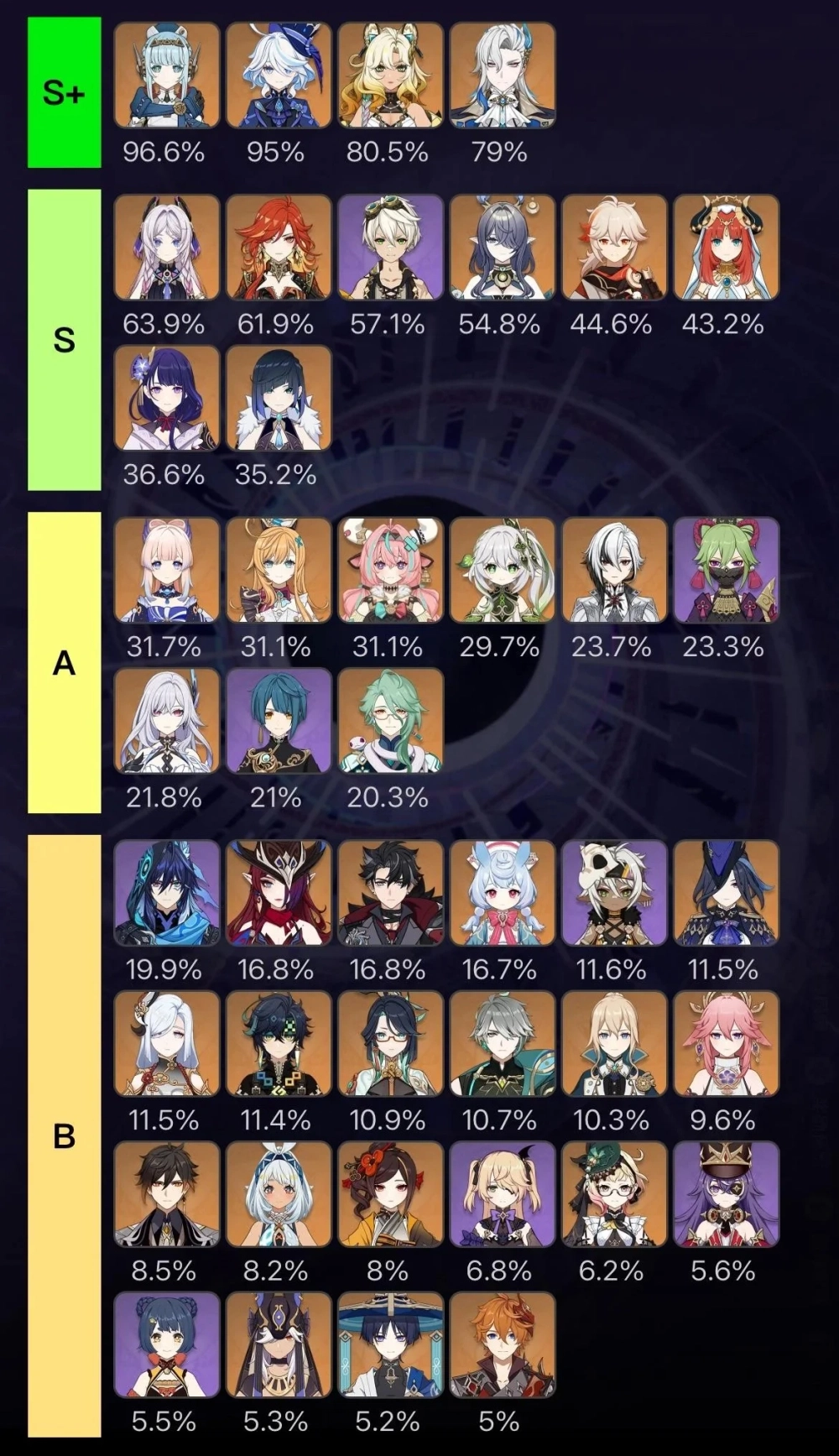 >>5661891 В Геншине более сотни персонажей, и все эти проценты тасуются в зависимости от состава местной дырки. Вон Невилет вылез в топ, хотя объективно он говно на фоне Мявуики и весь Натлан был под ней. Щяс вот Кирюша вышел, электроперсонажи тоже поднимутся в топе.