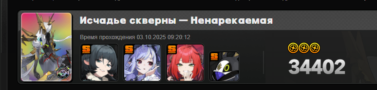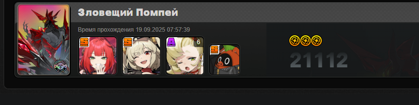 Забыла, что сегодня был ресет у сосолта. Вчера на ночь потыкала бимбо Изольду Беляшом с Юзушкой, как один протык с ютуба, но что-то нихуя не вышло. 8/9 как было, так и осталось. Чисто теоретически бимбо сестрицу Писюани можно на ЭСС-ку сделать, на второго босса выпустить боевого Мибоба с карманной Янаги, пусть крутится как хочет, но на третьего могу только предложить безумное сочетание Чжу, Вивички и Астры, у меня нихера больше нет... Энивей, плюшик залутала, как-нибудь выбью три звезды в штурме на Беляше и выебнусь.