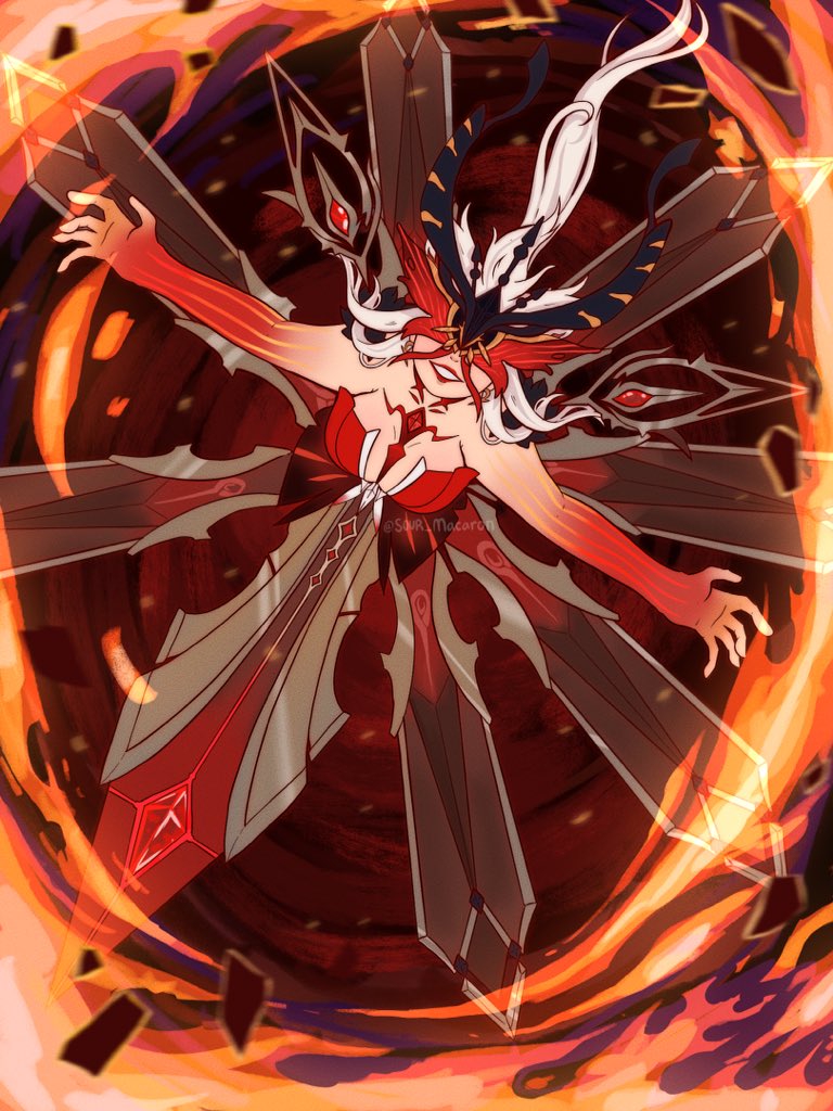Elemental Burst (Q): Off-field Pyro DMG with effects depending on form. Form 1: Larger AoE, lower multipliers Form 2: Smaller AoE, higher multipliers