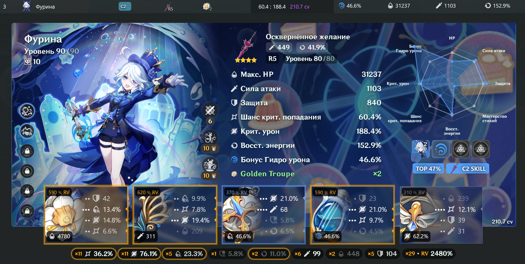 Пробежал утром 40 инстов, чтобы апнуть хоть один арт на Фурину. В итоге не одного не заменил, потому что падает просто ХУ Е ТА. Ляо, блять, насрал говнищем, будто арты на 4 стата вообще суперредко падать стали. Это при том, что моя Фуринка далеко не в топ арты одета.