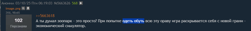 >>5663836 >Как у тебя перс до 90 превратилось в артефакты и оружие? >>5663626 >При попытке одеть обуть всю эту ораву игра раскрывается себя с новой грани - экономический симулятор. >одеть обуть