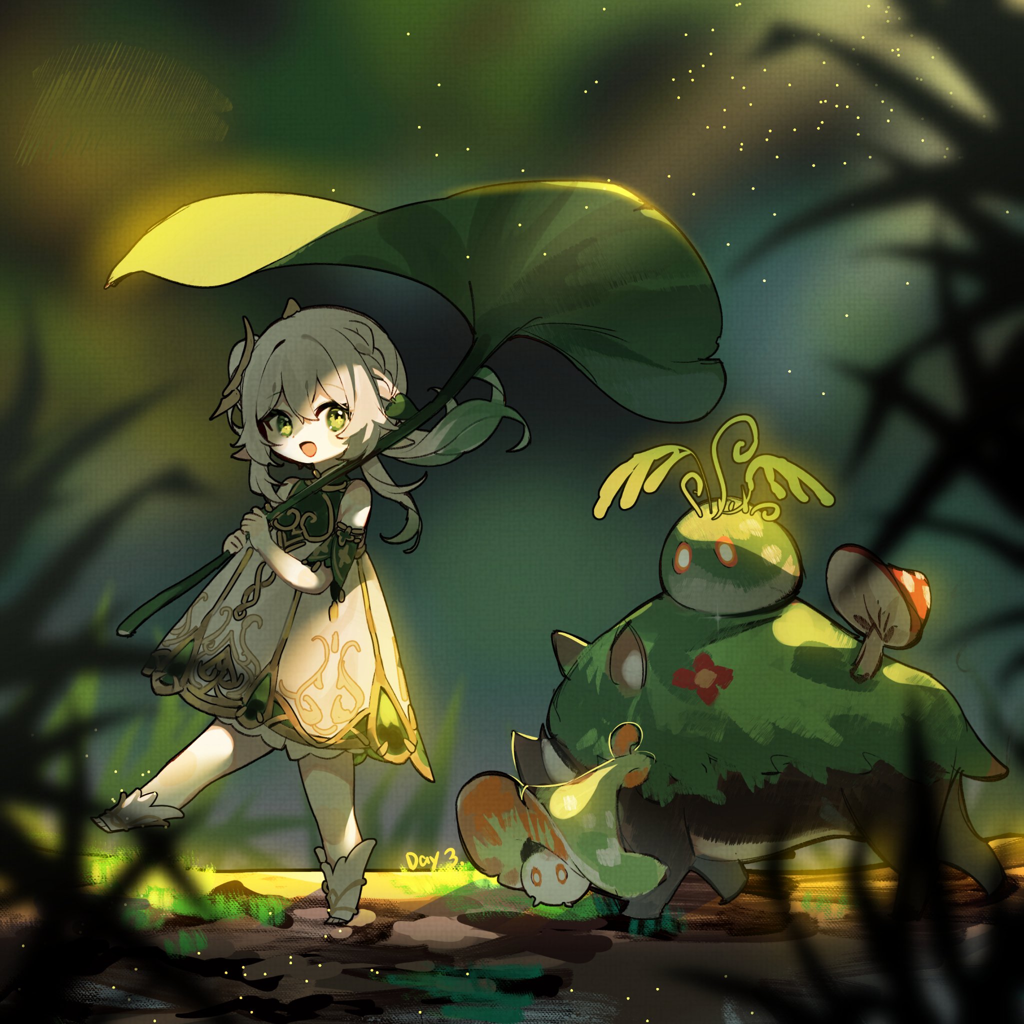 Кирара , например, не подойдёт? Там есть щит и небольшой баф бонуса элементального урона. И ещё дендро.