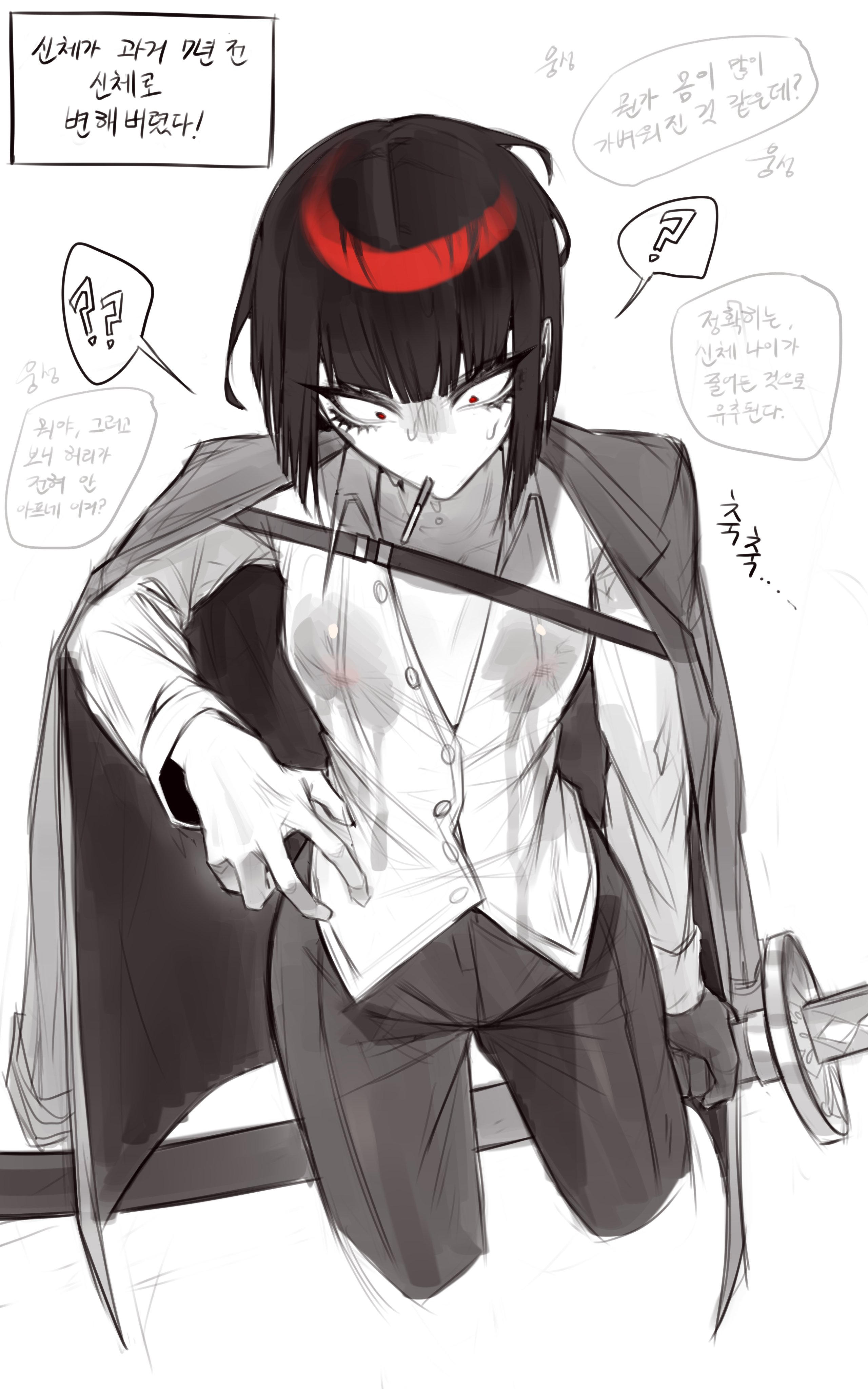 Ryoshu is a trans guy. He cut his own hair with a sword in a dramatic moment. It's not that he hides his identity, but he's fine with people assuming he's a cis woman bc it is funny. He will confidently walk into mens restrooms or walk around in just boxers or whatever and everyone is always just like "oh man, ryoshu's doing a fucking bit again", which is funny enough that he doesn't say anything. If someone were to react with genuine hatred or something, though, he would walk up to them, explain that he IS a guy, and kill them. It's an art.