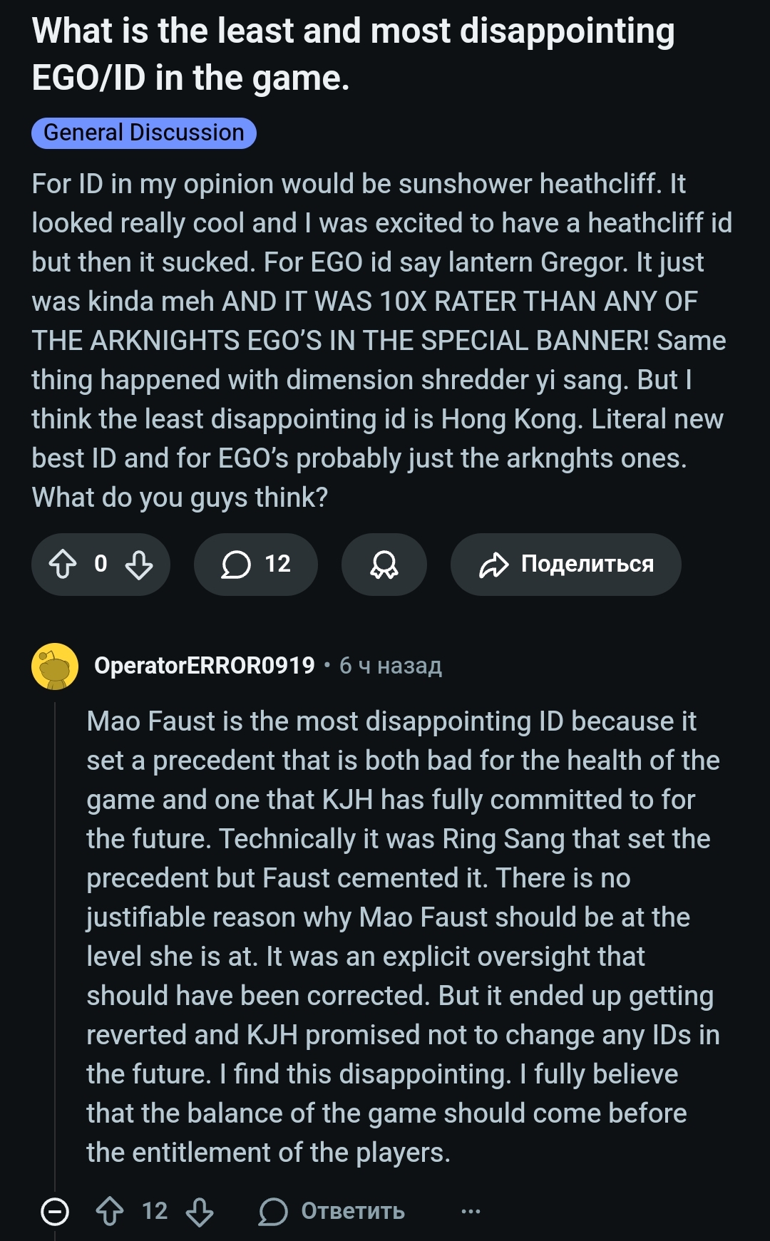 >>5692687 Лучше уж ныл что она задала планку ид адептов, и после нытья сравниваем с ней плотву санька, которому сделали гиммик заряжаемый только минимум на 3й ход, так еще 1 из кондишей тупо еще не существует в природе(2 бурста с 1 скилла), а тот что есть в скиллах отдельно закокблочен потому что иди нахуй. Вообще плотва в каком то роде пуля отис для рапчи, ид в целом средняк, берется чисто ради статуса на множитель урона рапчи. Нытье бтв оверрейтед, фауст без ассист дефа с спамом с3 тупо клон решки, лучше бы ныли что ей сделали фейк анимации с явно отличным кол-вом монет от тех что на деле.