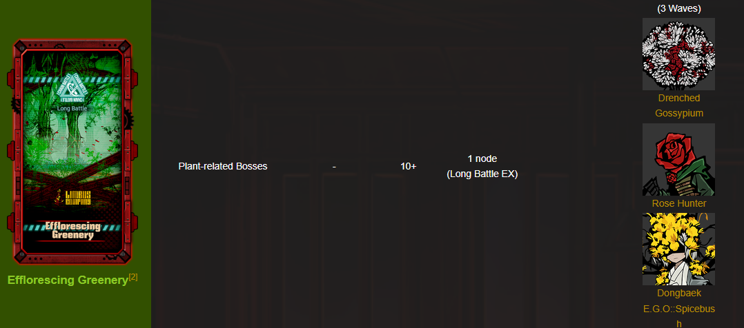 1. Айди Сальвадора на Гришу. Берн-тремор, механики взаимодействия с агро и протекшами для синергии с эго коня, накидывание щитов и дефенс павер апов на союзников. 2. Айди Юны на Рёшу. Берн-пойз, лонфиксер с механиками пожирания слотов, подрубается в случае если сдохли все союзники или оба других айди из офиса Рассвета. 3. ЭГО Плачущих Детей на Синклера. Уникальные -СП механики, которые перекрывают дебаффы от выпадения из ЭГО режима. Синхронизация ЭГО, возможно синхронизация ЭГО или уникальные виды атак в зависимости от того, присутствуют ли на поле Сальвадор и Юна. Перманентный ЭГО режим в случае, если они оба откинулись. Общий бафф Филиппклера и попытка сделать его вайабл за счет взаимодействия с новыми мета-айди. 4. Боссфайт с Цирком 8 часа. Миррор ворлд, в котором офис Рассвета не пошел в библиотеку, а вместо этого помог Оскару с зачисткой. Волны противников-зверей, нибигающих на игрока и снижающих всем СП. Финальный босс в виде Освальда ваншотает под конец тиму при помощи карточки КЛИМАКС из Урины, сценка с воспоминанием на этом заканчивается. В качестве комментаторов Оскар, Памела и Памели, которые срутся между собой.