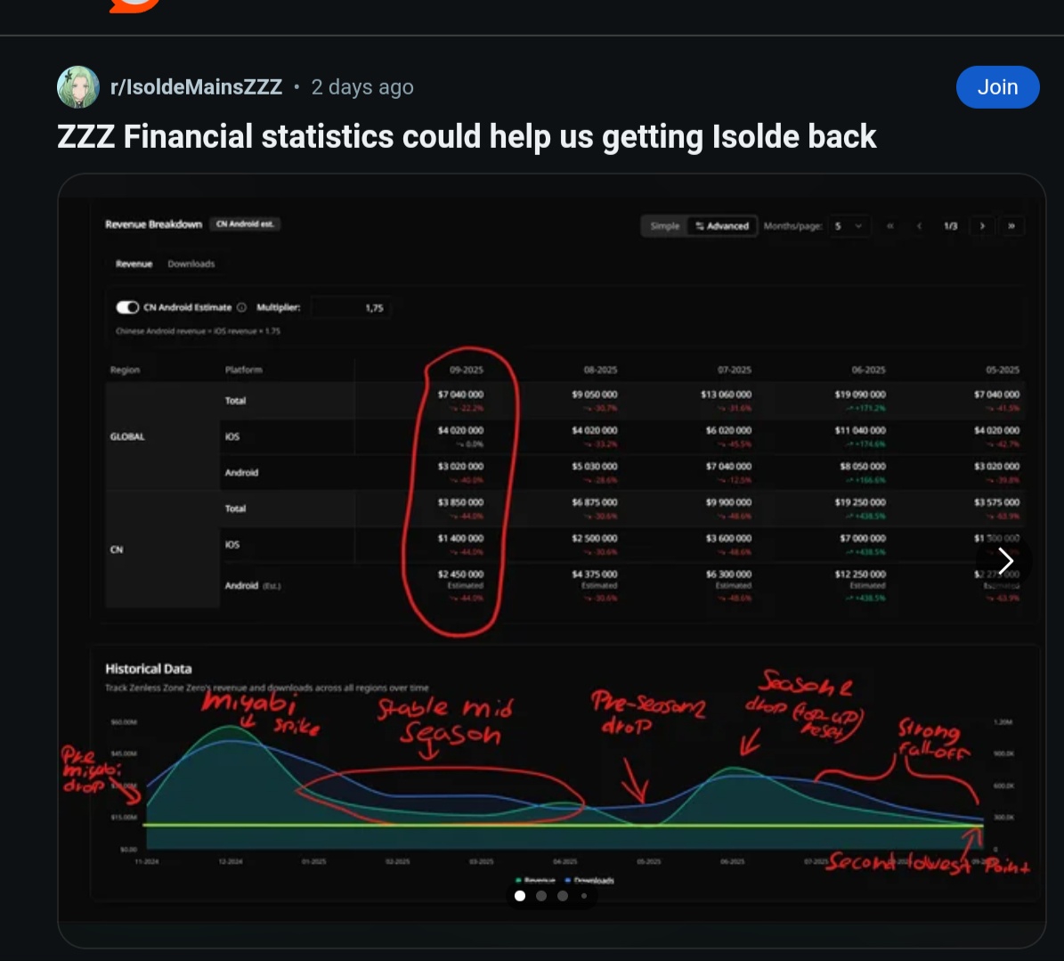 >>5670723 Совокупный дохоё михоё за последние 3 года падает год от года. Он выпустил Женовоз, его заработок упал. Он выпустил ззз, его заработок упал. Ляо не только не набирает новых людей при выпуске новых проектов, он их теряет с каждым разом. Каждый зафейленный проект копипасты стоит ему репутации и игроков. Все просто понимают, что это не Геншин сложно делать, это просто контора такая. Она берет одну и ту же формулы игры без игры и гачу без гачи (фансервиса-то не будет никогда, только хаотичные намеки, половина из которых для другой аудитории, поэтому только в минус) пытается подсунуть под разным соусом. На третий раз просто уже обучились. Ззз умерла очень быстро, когда стало понятно, что разраб собирается в третий раз всех одним и тем же накормить. И никакие релаунчи не помогут, потому что компания Михоё никогда не выберет стул. Они компания маркетинг, а не компания криейтор, им проще слить проект и переключиться на новые релизы.