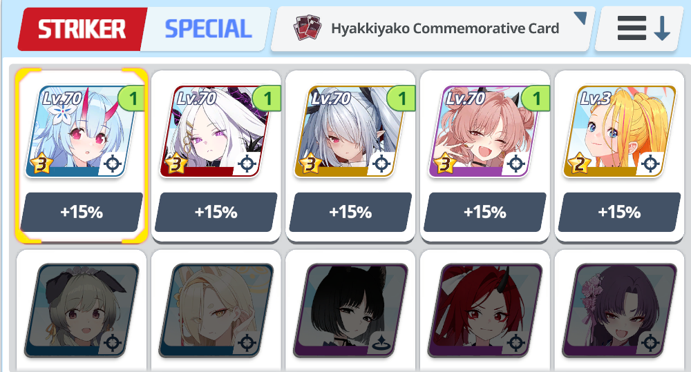 Я забил на этот челленж, есть уе50 Хина, но даже близко урона нет как у протыков с ютуба, на 1 красного челика надо фул залп, а пляжной Хошино забустить урон нет.