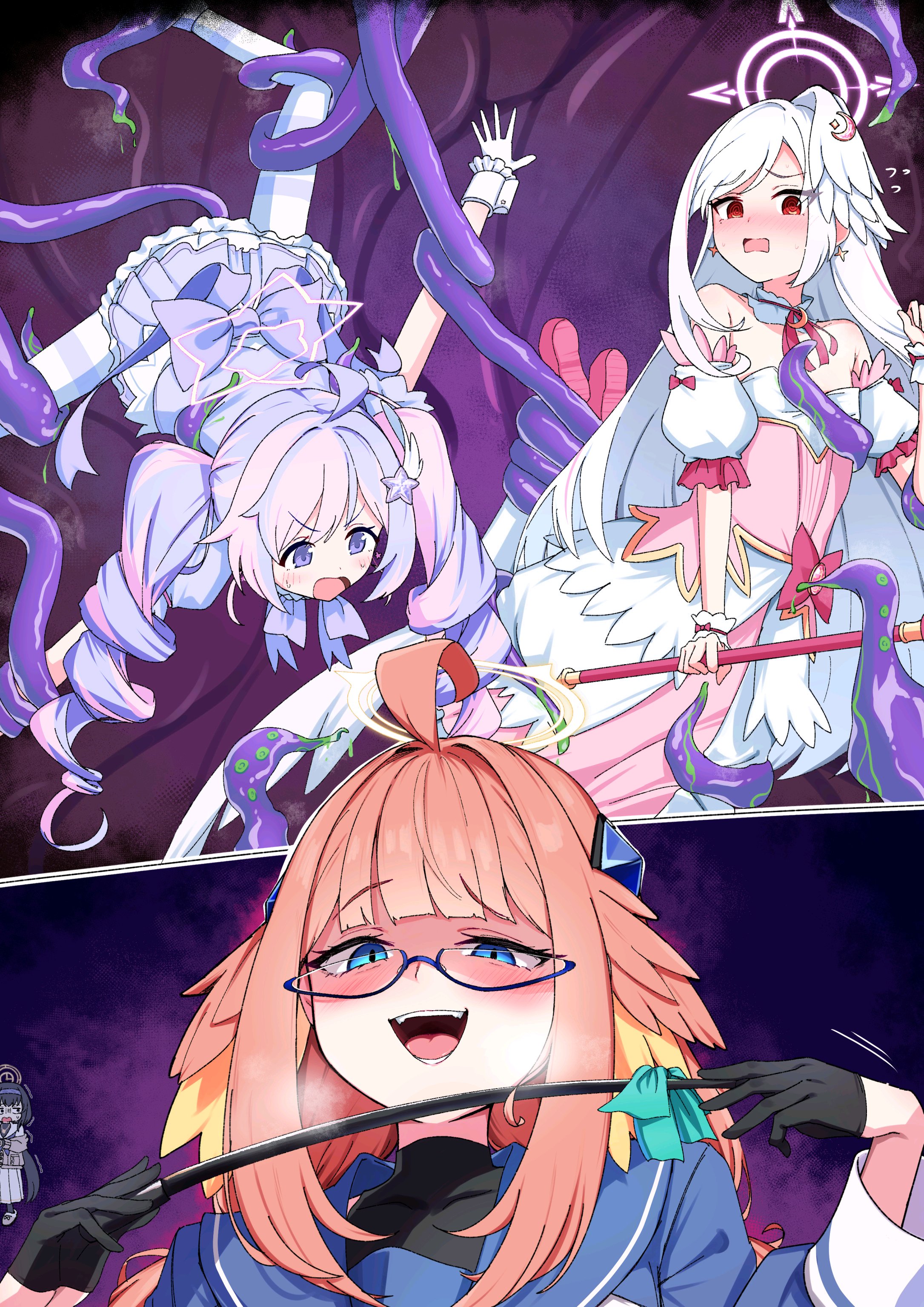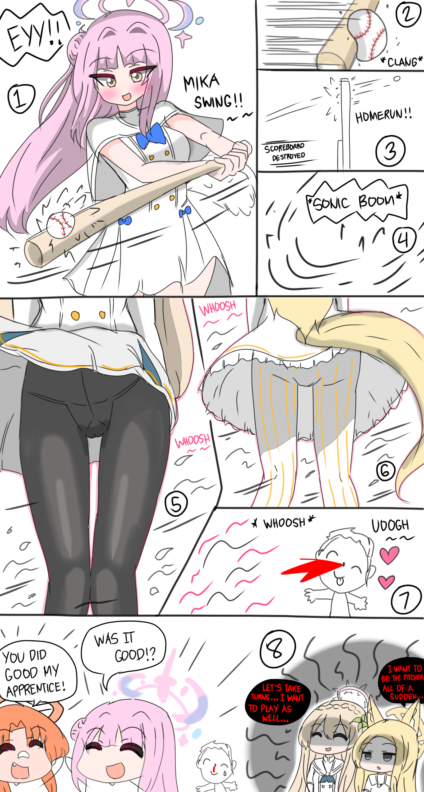 МИЛЛЕНИУМ, КЛУБ РАЗРАБОТКИ ИГР. Врываюсь с ноги, вышибая дверь. Момои и Мидори сидят на пуфиках и рубятся в файтинг. НЕТ ВРЕМЕНИ ОБЪЯСНЯТЬ! Хватаю Момои и Мидори и сталкиваю их лбами под звук "K.O.!" из их же игры, и пока они в отключке, быстро делаю два фрага. Юзу забилась в свой шкафчик. СУКА, ДУМАЕШЬ, СПРЯТАЛАСЬ? Выламываю дверь, вытряхиваю её оттуда, и быстро продуваю, вдуваю как старый пыльный картридж из Денди. Остается Арис. Она смотрит на меня своими невинными глазами и спрашивает: "Это… ивент?" — "ЭТО ПАТЧ БЛЯДЬ", — отвечаю я и начинаю действовать. Слышны только звуки "пиу-пиу", но это она от неожиданности нажимает на кнопки геймпада. Обновлено. Дальше.