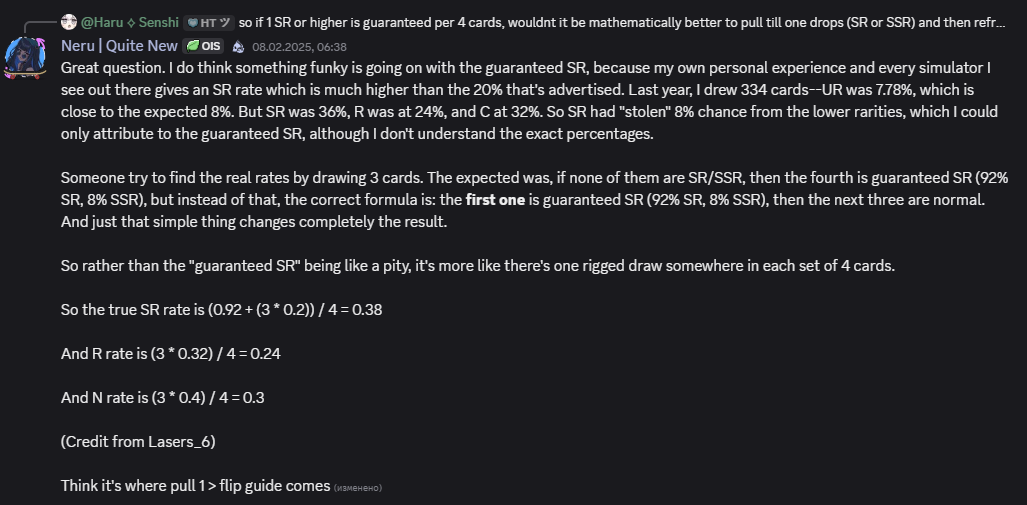 >>5790894 >под ендгейм Под эндгейм тут в основном саппорты крутятся, и в большинстве они в стандартном пуле, так что прям целенаправленно кого-то крутить такое себе, тем более там новые лимитки имеют потанцевал. А если так, то Кикую, она не мастхэв, но юзается практически во всём фиолетовом эндгейм контенте. Пляжная Изунька - дешёвый кост, таргет лок, высокая скорость атаки, лимитка. НО! Через 2 месяца будет годовщина, там мало того, что убермету выкатят вместе с халявными крутками, так ещё и аннивёрсари баннер будет иметь х2 рейты и очень маленькую, но возможность вытянуть прошлых юбилеек. Так что я бы на твоём месте тупо фармил крыни, чтоб не глядя запулить два гаранта.