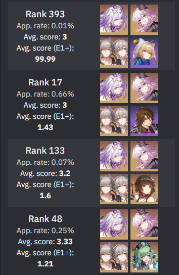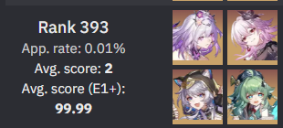 >>5676719 Там отдельно показывает е1+ скор. По той же Фуги у которой минимум 3 команды вообще 0 результатов. >>5676723 Там даже 0.1% показывает команды, ещё меньше чем 0.1?