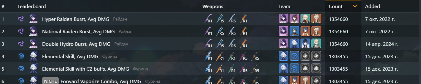 ✦ Показать персонажей картинкой https://akasha.cv/ ∙ https://enka.network/ ∙ Гайды https://t.me/genshin_academy/ ∙ https://keqingmains.com/
