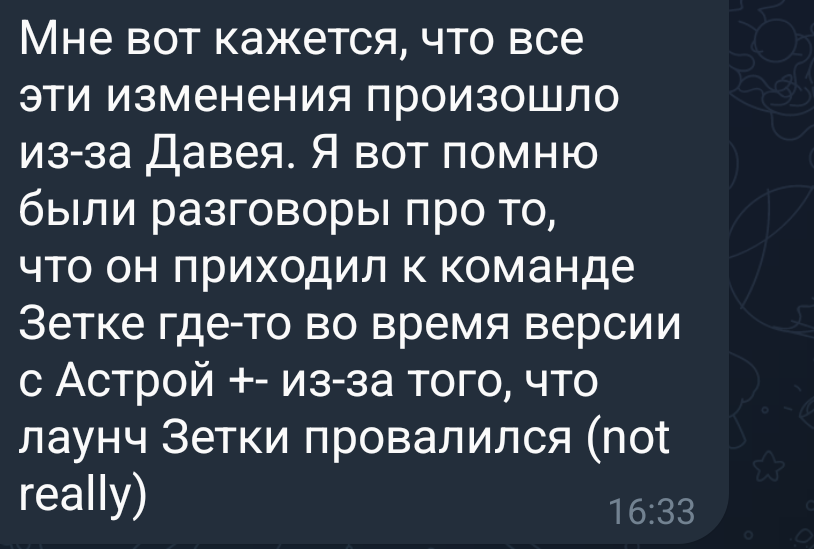 А если бы игру с самого начала не делали бы агушей и больше бы развивали тему фетишей как с Сид, добавили больше сексэв и взаимодействий такого толка с агентами, то мб сейчас бы ззз была в топе, но хуесос на давее и ко решили сразу на всех стульях посидеть, позаниматься каннибализмом, кражей аудитории у своих же проджектов и многой другой хуетой, метаться из стороны в сторону и закономерно пососать со всех сторон сразу