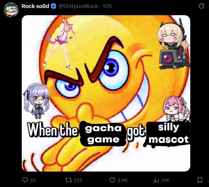 Ускорение это самое конченное что делают гачи, так бы я планировал свои крутки и смотрел какие эвенты и баннеры следщеие, а теперь трясусь за свои круточки ведь не ебу что там придумает хитрый китаец и какой баннер выкатит или эвент будет зато актуалобляди довольны